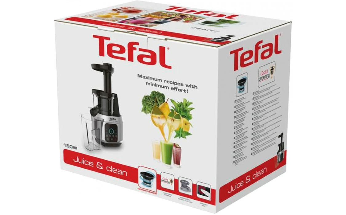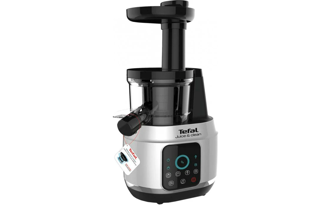 Соковитискач Tefal Juice&Clean шнековий 150Вт, чаша-0.8л, жмих-0.8л, пластик, сріблясто-чорний