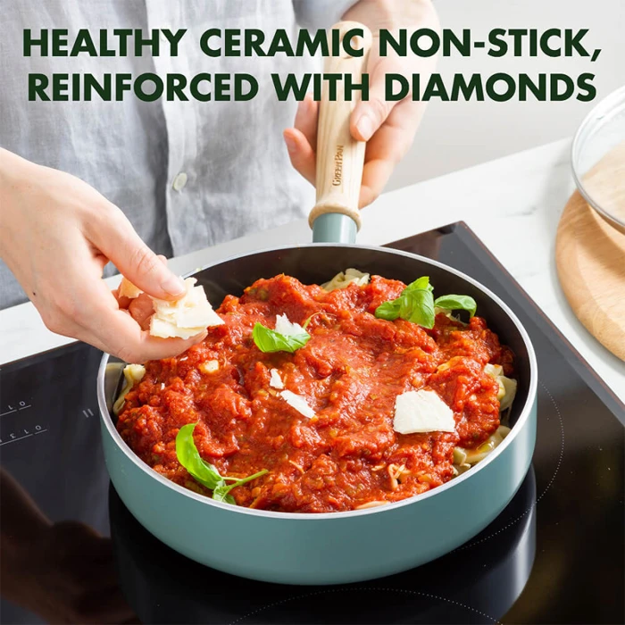 Завдяки товстій кованій алюмінієвій основі та керамічному антипригарному покриттю Thermolon Infinity з алмазним напиленням, ця колекція може похвалитися швидким і рівномірним нагріванням кожного разу.