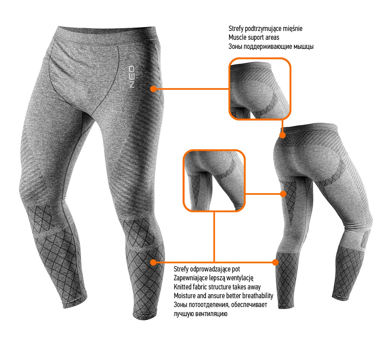 Кальсони термоактивні NEO виготовлені з високоякісної тканини, яка забезпечує захист від холоду. Безшовна термоактивна білизна, яка зветься «другою шкірою», завдяки своїй конструкції забезпечує комфорт експлуатації. Конструкція тканини відводить вологу, яка утворюється на шкірі. Ділянки тканини спеціальної конструкції розміщені в анатомічних місцях, найбільш наражених на потіння. Марка NEO відповідає очікуванням професіоналів.