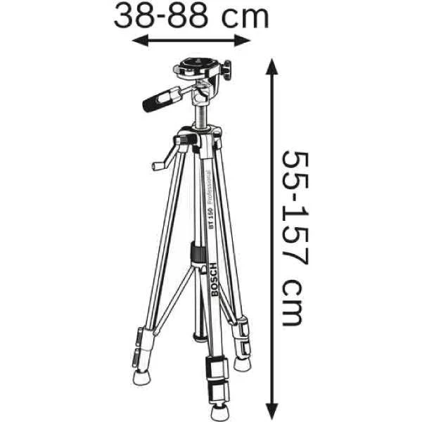 Штатив BOSCH BT 150 - надійний помічник для точних вимірювань та професійних завдань. Виготовлений із легкого, але міцного алюмінію, він забезпечує стабільність і тривалий термін служби. Регулювання висоти в діапазоні від 55 до 157 см дозволяє адаптувати пристрій до будь-яких робочих умов.