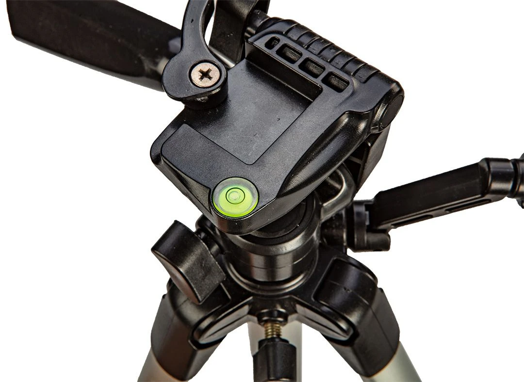 Алюмінієвий штатив (різьблення 1/4 ") відрізняється легкою і, разом з тим, міцною конструкцією. Телескопічні ніжки з блокаторами-зажимами, а також регульована головка забезпечують високу стабільність, штатив дозволяє встановлювати прилад на висоті до 150 метрів. Є ампула для вирівнювання головки по горизонталі. швидкоз'ємні з'єднання з гумовим покриттям додатково підвищує стабілізацію і захищає приєднуються прилади від подряпин. Штатив можна використовувати для роботи з дальномерами, перехресними лазерами і будівник площин.