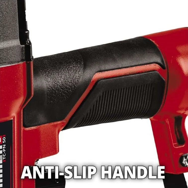 Степлер пневматичний TC-PN 50 4137790. За допомогою нового пневматичного степлера Einhell TC-PN 50, Ви можете виконувати зшивання та прибивання різних матеріалів без зусиль швидко та скрізь, де це Вам необхідно: чи то в будинку, чи на дачі. Завдяки наявності в комплекті постачання скоб та цвяхів, він готовий до негайного використання. Корпус із литого алюмінію та високоякісні компоненти забезпечують тривалий термін служби пневматичного степлера Einhell TC-PN 50. Індикатор рівня завантаження інформує про залишок скоб або цвяхів у корпусі степлера.