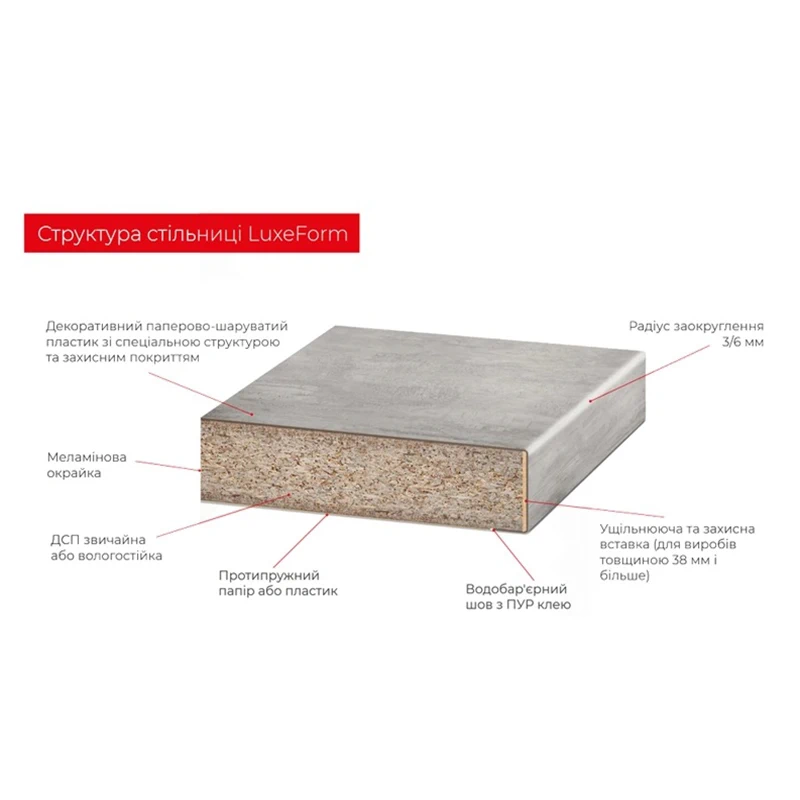 Столешницы Luxeform изготавливаются из высококачественного материала, который состоит из пяти слоев. Большинство столешниц Luxeform изготавливают из МДФ или ДСП, покрывая их высококачественным ламинированным покрытием, которое может иметь матовый или глянцевый эффект. Кроме того, они легко чистятся и обладают высокой устойчивостью к воздействию влаги и тепла.