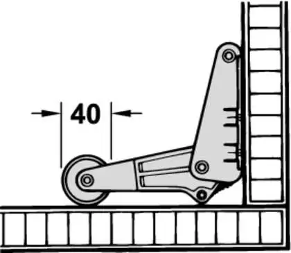 Роликова педаль для відкривання поворотних дверей шафи без застосування рук. Матеріал: ніжна педаль: пластмаса, чорного кольору/роликовий елемент: пластмаса, білого кольору/пластина: сталь, лакована, чорного кольору, для висоти плінтуса мін. 100 мм.