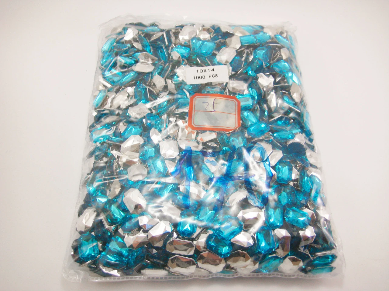 Стразы «Прямоугольные», 10х14мм, Цвет «голубой»
