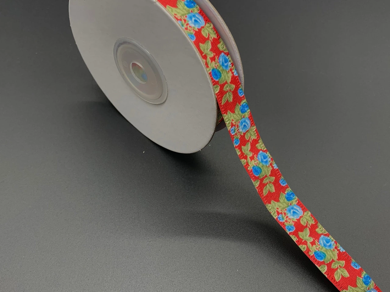 Лента декоративная, «Цветы», 1,5см, 20м/рул, Цвет «красный»