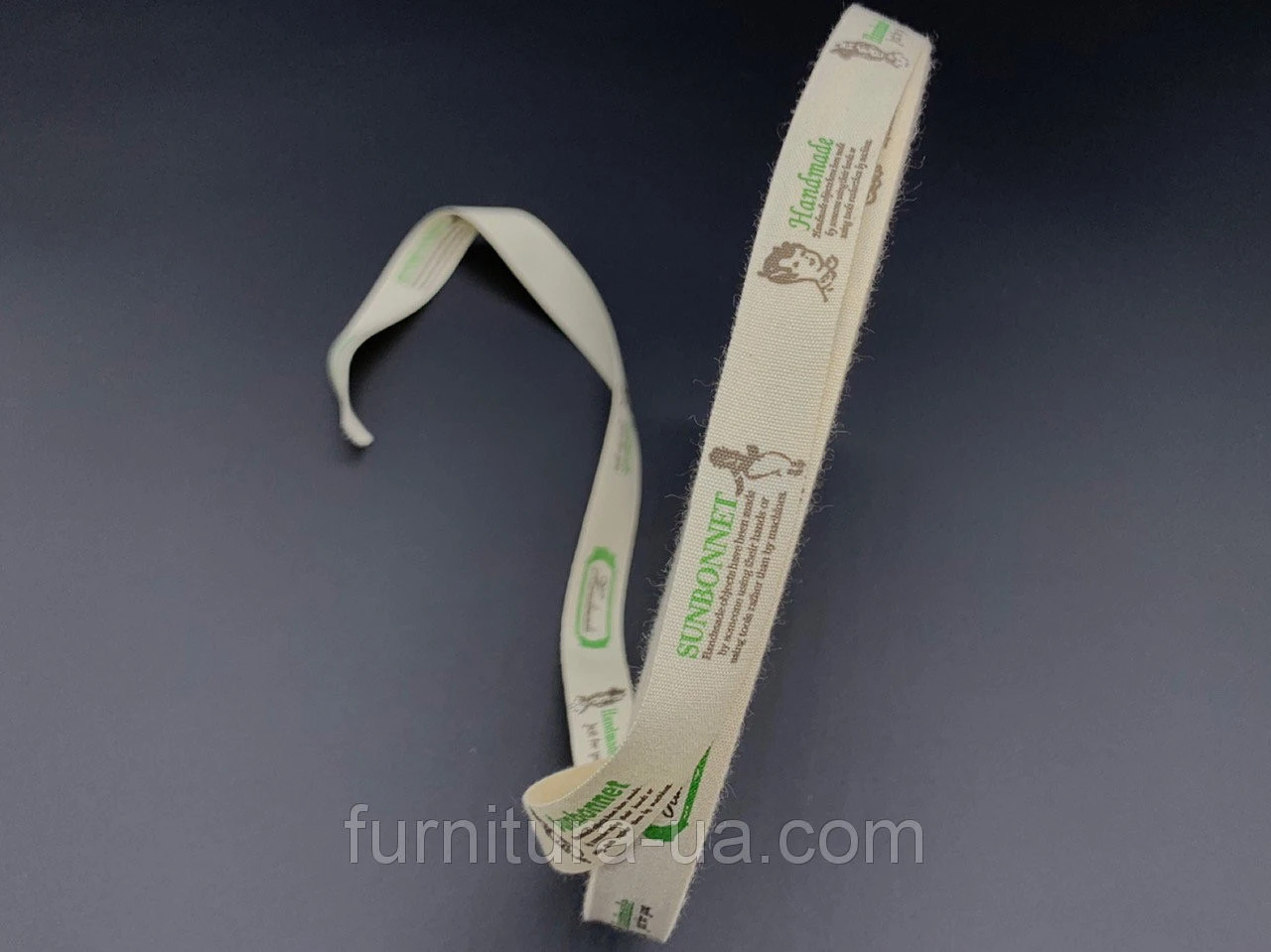 Лента декоративная с узором, «HandMade Sunbonnet», 1,5см, Цвет «бежевый»