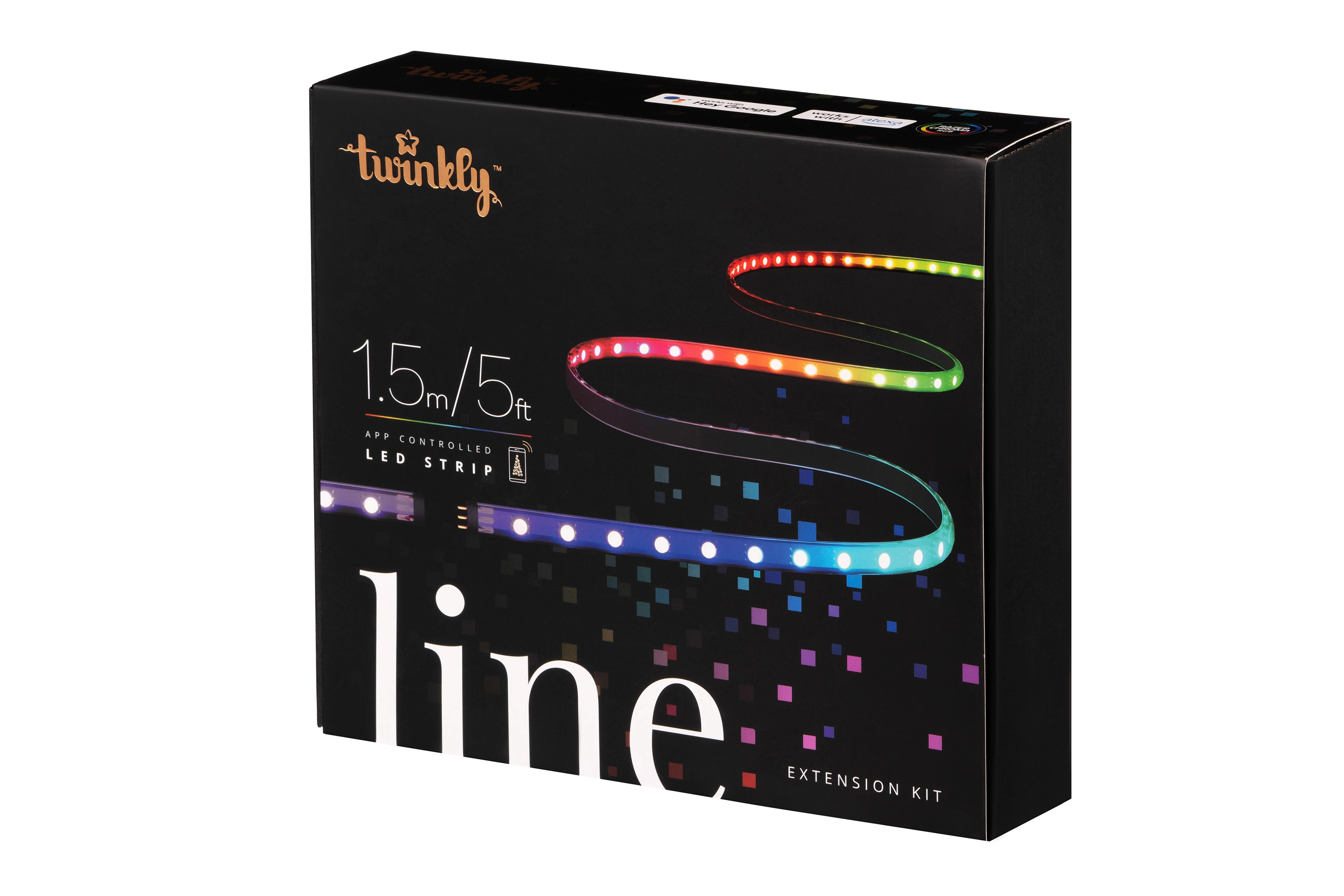 Twinkly Line - сучасне кероване дистанційно розумне світлодіодне підсвічування для оздоблення домашнього інтер'єру. За допомогою цього продукту можливе збільшення базової довжини Twinkly Line вдвічі, аж до 3 м та, водночас, збільшення кількості ламп до 200 шт. Twinkly Line надає користувачам творчу можливість створювати індивідуальне освітлення у всьому житловому приміщенні, ефектно підкреслюючи елементи інтер'єру чи строкато оголошуючи про власні ідеї та акценти. Це преміум-світлодіодна стрічка, готова до використання з коробки, з сотнею світлодіодних ламп типу RGB на міцній клейовій основі зі зворотного боку.