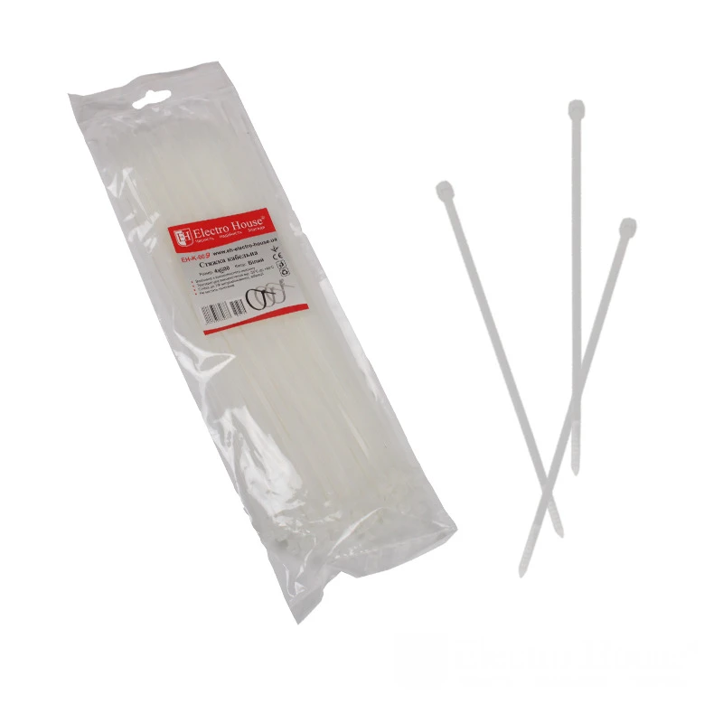 Стяжка кабельная 4х400 мм, 100 шт., белый