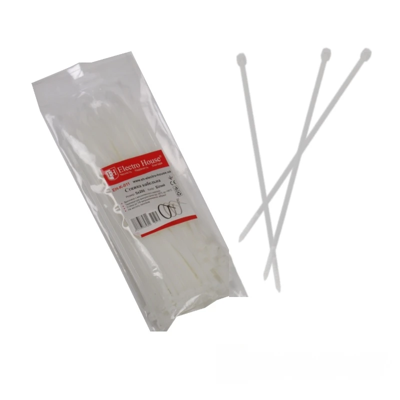 Стяжка кабельная 5х200 мм, 100 шт., белый