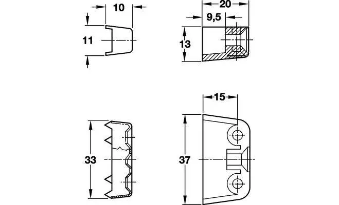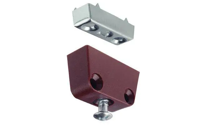 Корпусна стяжка Т для пригвинчування за допомогою гвинта з комбінованим шліцом. Верхня частина стяжки виготовлена з пластмаси коричневого кольору, нижня частина і з'єднувальний гвинт виготовлений з оцинкованої сталі.