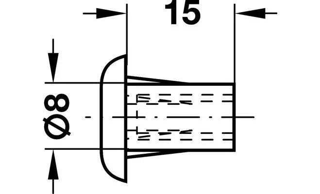 Втулка з внутрішньою різьбою М6, виготовлена з пластмаси білого кольору. Параметри втулки: привід-плоский шліц; довжина-15мм; діаметр ніжки -8 мм.
