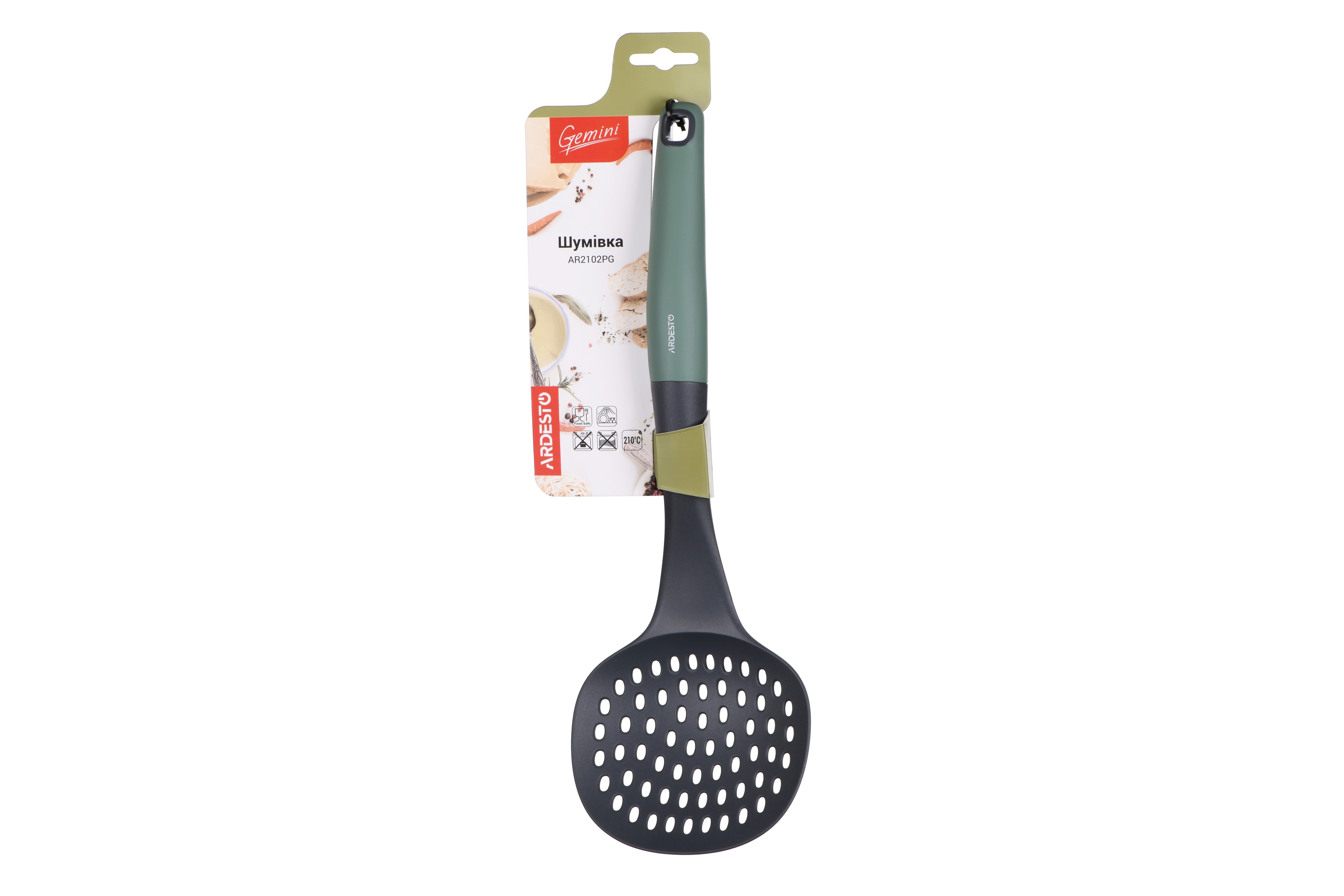 Основна частина шумівки зроблена з нейлону, а покриття ручки з прогумованого пластику. Приладдя з нейлону можна використовувати з посудом із антипригарним покриттям.