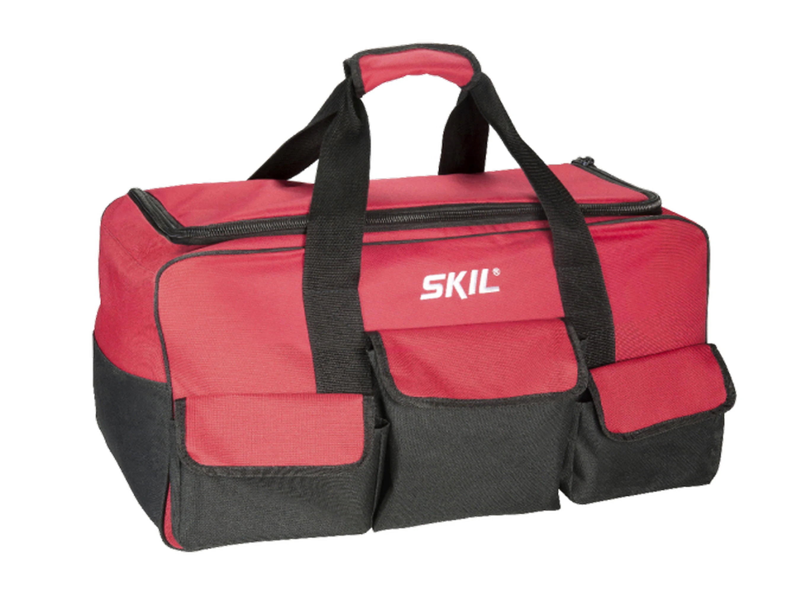 Велика сумка SKIL із міцного поліестеру ідеально підходить для зберігання та транспортування електроінструментів. Зручні ручки, плечовий ремінь і численні кишені забезпечують комфорт і організацію. Посилене дно захищає вміст від вологи та пошкоджень.