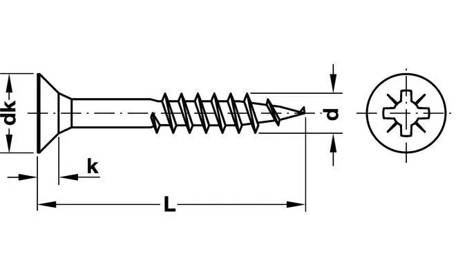Шуруп Hospa для ДСП з неповною різьбою і потайною голівкою, виготовлений з оцинкованої сталі. Параметри шурупа (мм): привід / діаметр різьби/довжина/діаметр голівки/висота голівки -хрестовий шліц PZ2/4,5/50/9,0/2,7 мм. Шурупи постачаються в упаковці Orga Box у кількості 200 шт.