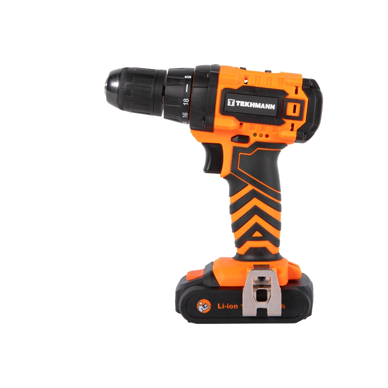 Шуруповерт Tekhmann TCD-18 LIW здатен працювати у двох швидкісних режимах – для операцій закручування/викручування (1-й режим) та свердління (2-й режим). Конструкцією муфти передбачена можливість вибору режиму обертання з ударом.