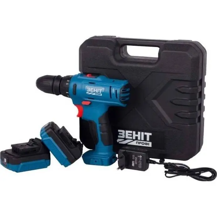 Шурупокрут-дриль акумуляторний Зеніт Профі ЗПША-12/15 DFR/B 12В 2х1.5А·год 25Нм 350·1500об/хв 1кг