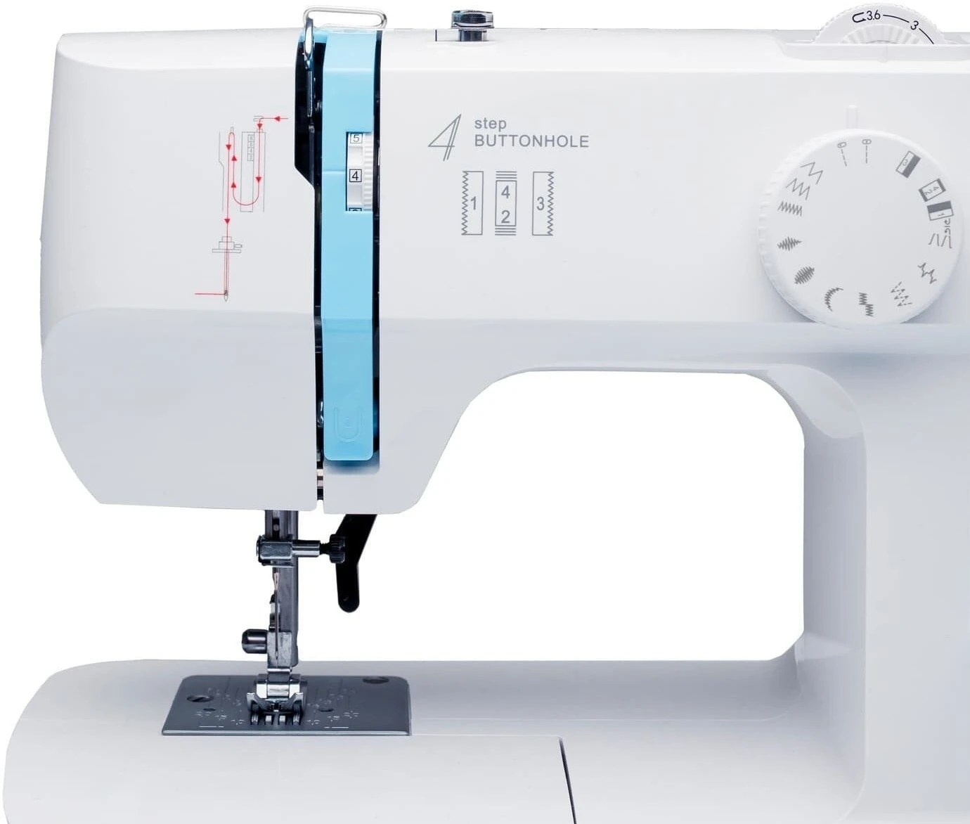 MINERVA Horizon R - проста і зручна модель швейної машинки компактної серії, оснащена класичним вертикальним човниковим пристроєм і яскравим світлодіодним підсвічуванням. Призначена для шиття і ремонту одягу. Виконує 13 видів строчок.