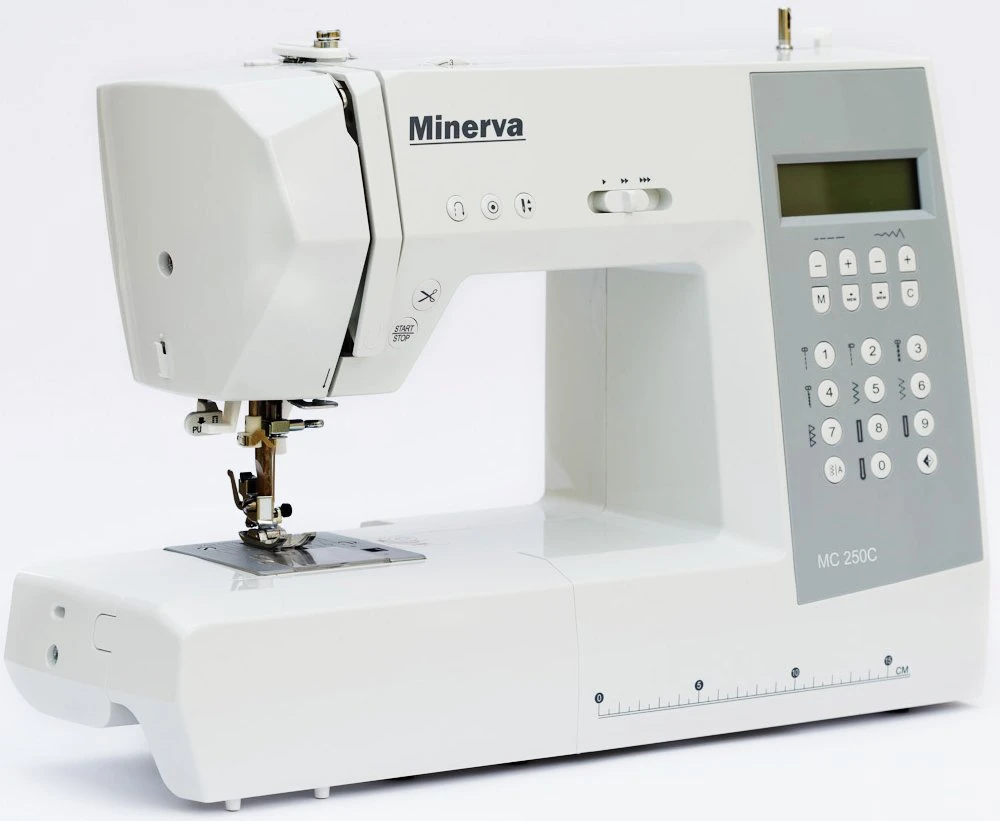 Швейна машина Minerva MC250C завдяки наявності блоку комп'ютерного управління може здійснювати 197 швейних програм, автоматично вимітувати 7 видів петель і вишивати 1 вид алфавіту. Крім того, вона здатна запам'ятовувати вибрані строчки і плавно змінювати довжину стібка до 4,5 мм і ширину рядка до 7 мм.