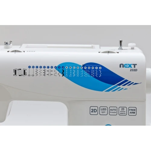 Minerva NEXT 232D - багатофункціональна швейна машинка механічної серії. Яскравий, сучасний дизайн і компактні розміри з легкістю допоможуть розмістити незамінну помічницю, як вдома, так і в невеликому ательє. Модель виконує 23 різних видів строчки і працює практично з усіма видами матеріалів. Керується двома дисками регулювання, а швидкість роботи становить 800 об. / хв.