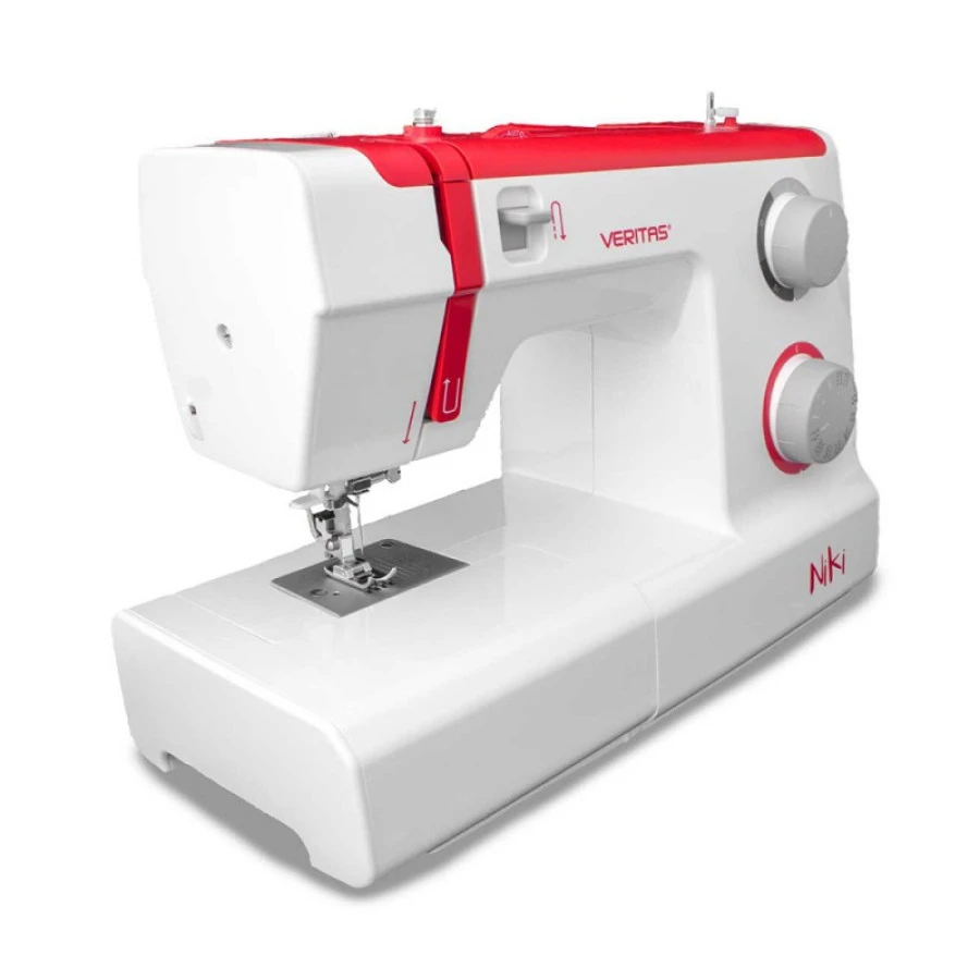VERITAS Niki - справжній універсал завдяки 23 програмам рядків, які можна швидко та легко індивідуально налаштувати за допомогою ручки керування. Потужний двигун цієї швейної машини подолає все, від еластичних стібків до стабільних універсальних рядків. У той же час, транспортер працює рівномірно і точно, створюючи чистий і рівномірний малюнок шва незалежно від того, яку тканину ви використовуєте. Автоматичний ниткодевач і ниткообрізач також спрощують шиття, залишаючи вашу голову вільною для творчої роботи.