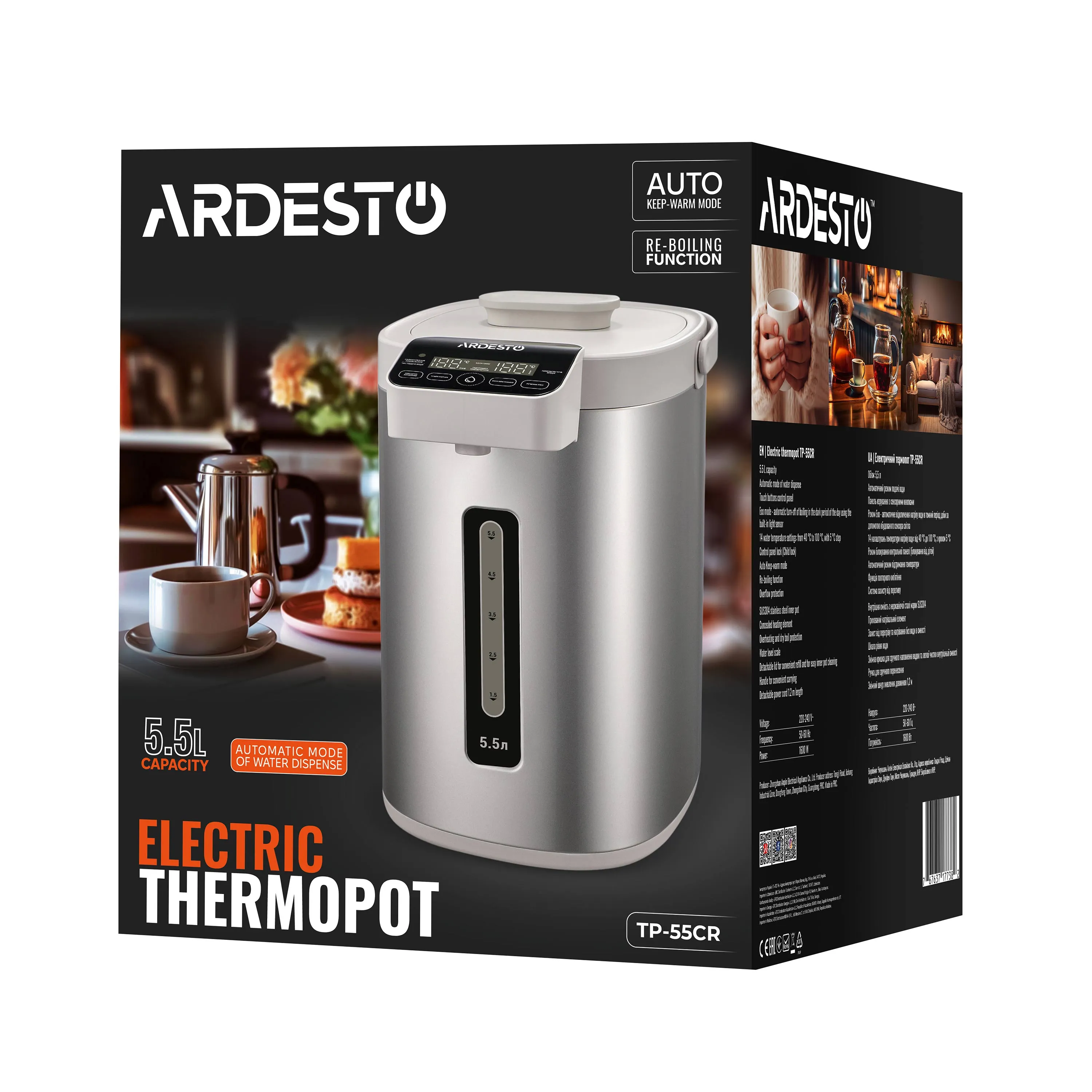 Термопот Ardesto 5.5л, дисплей, нержавіюча сталь+пластик, сіро-білий