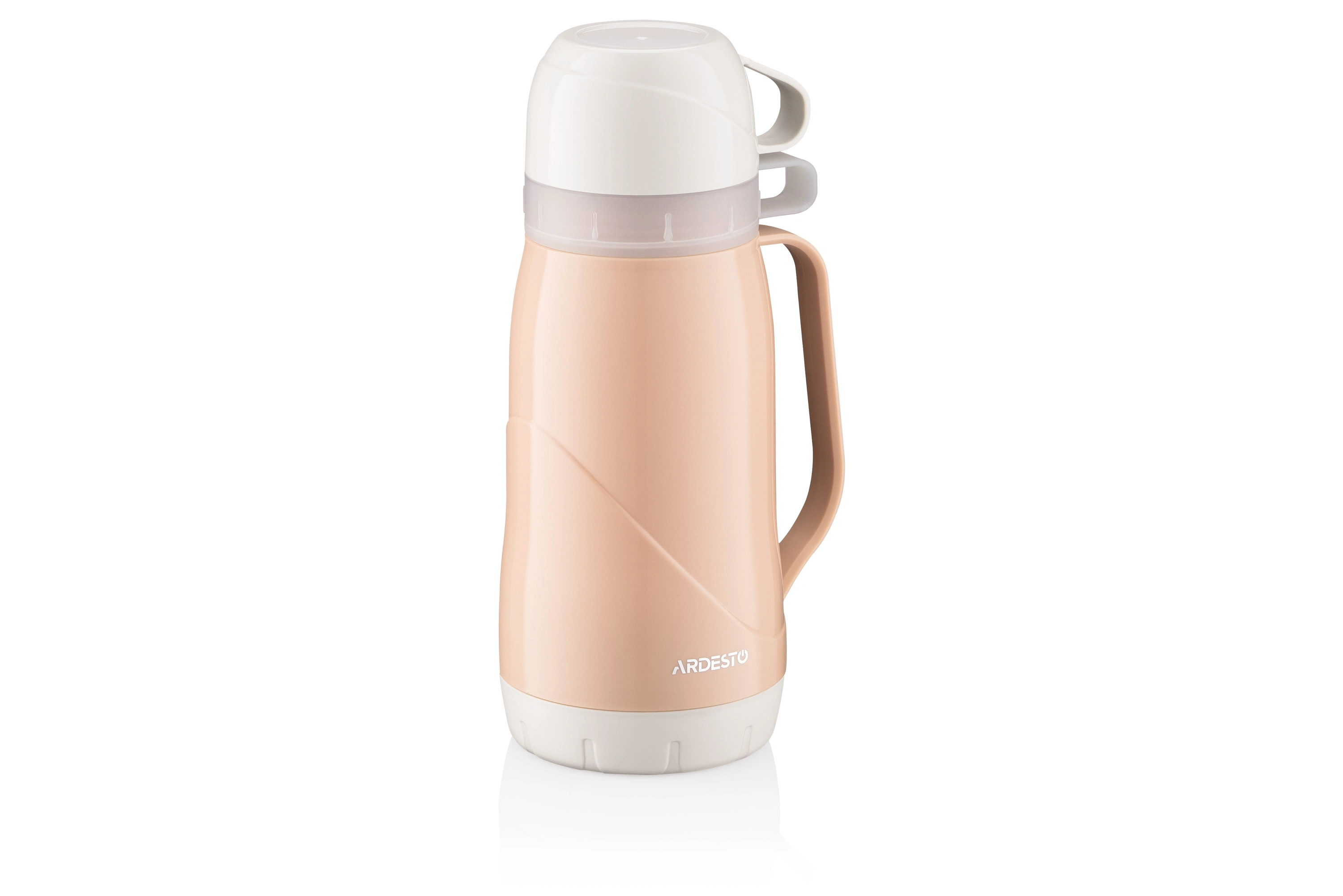 Термос ARDESTO Gemini Gourmet виготовлено з пластику пудрового кольору. Об’єм становить 1 000 мл. У комплекті 2 чашки. Скляна колба добре утримує тепло, не поглинає сторонніх запахів і не вступає в реакцію з продуктами. Термос оснащено кришкою з різьбою, що щільно прилягає, унеможливлюючи протікання та зберігаючи температуру гарячого та холодного напою 24 год. Догляд за посудом нескладний, проте мити в посудомийній машині не можна.