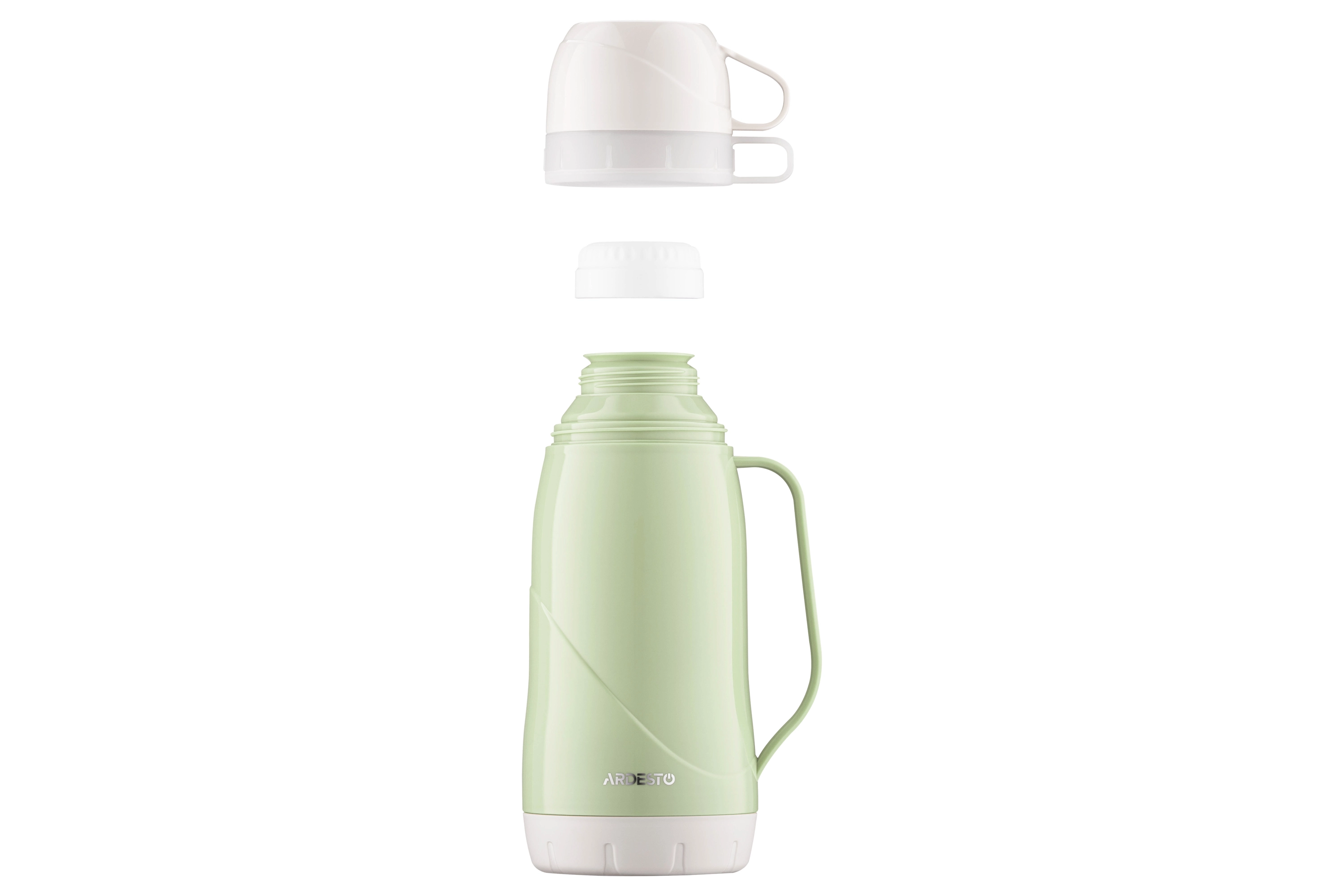 Термос ARDESTO Gemini Gourmet виготовлено з пластику зеленого кольору. Об’єм становить 1 000 мл. У комплекті 2 чашки. Скляна колба добре утримує тепло, не поглинає сторонніх запахів і не вступає в реакцію з продуктами. Термос оснащено кришкою з різьбою, що щільно прилягає, унеможливлюючи протікання та зберігаючи температуру гарячого та холодного напою 24 год. Догляд за посудом нескладний, проте мити в посудомийній машині не можна.
