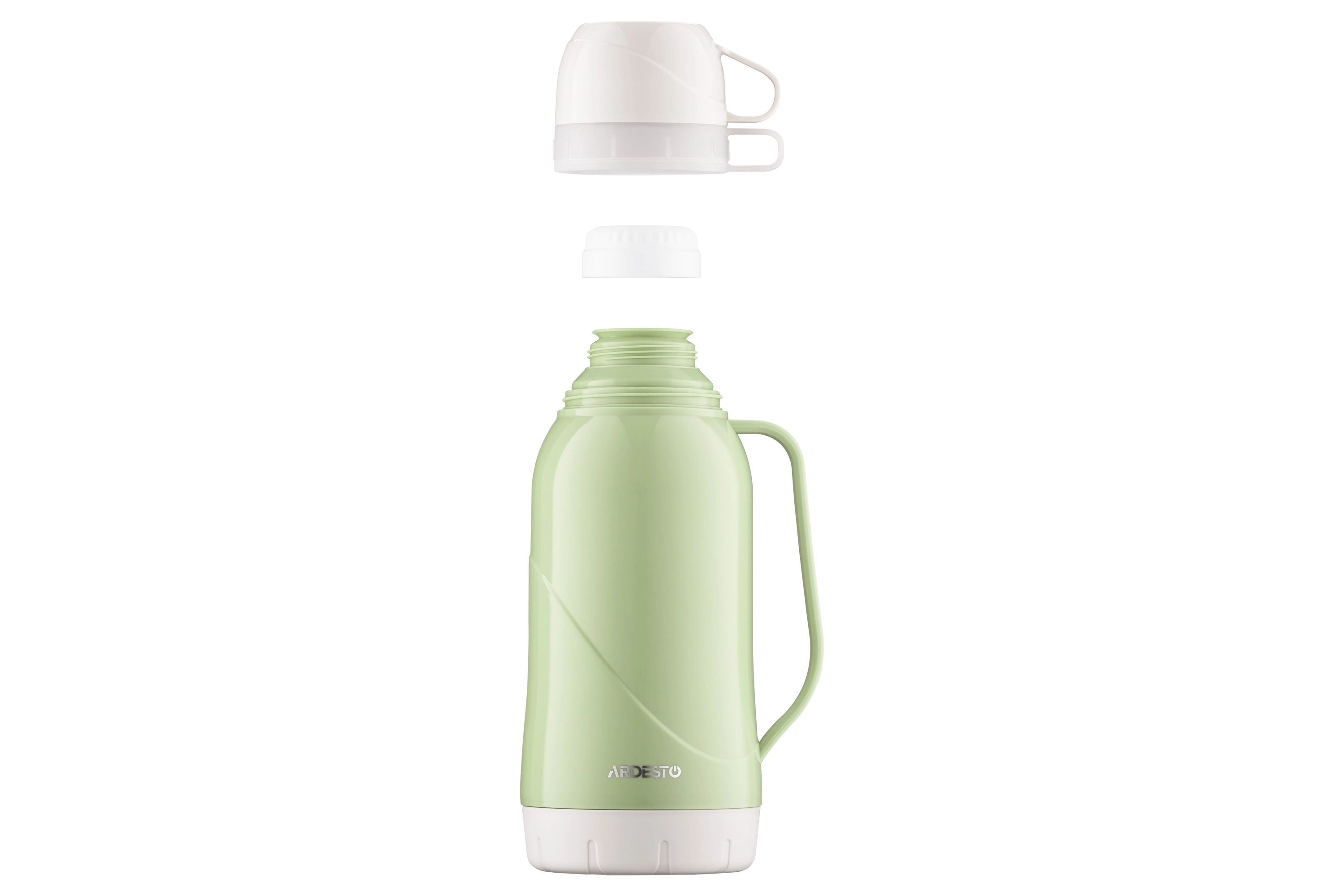 Термос ARDESTO Gemini Gourmet виготовлено з пластику зеленого кольору. Об’єм становить 1 800 мл. У комплекті 2 чашки. Скляна колба добре утримує тепло, не поглинає сторонніх запахів і не вступає в реакцію з продуктами. Термос оснащено кришкою з різьбою, що щільно прилягає, унеможливлюючи протікання та зберігаючи температуру гарячого та холодного напою 24 год. Догляд за посудом нескладний, проте мити в посудомийній машині не можна.