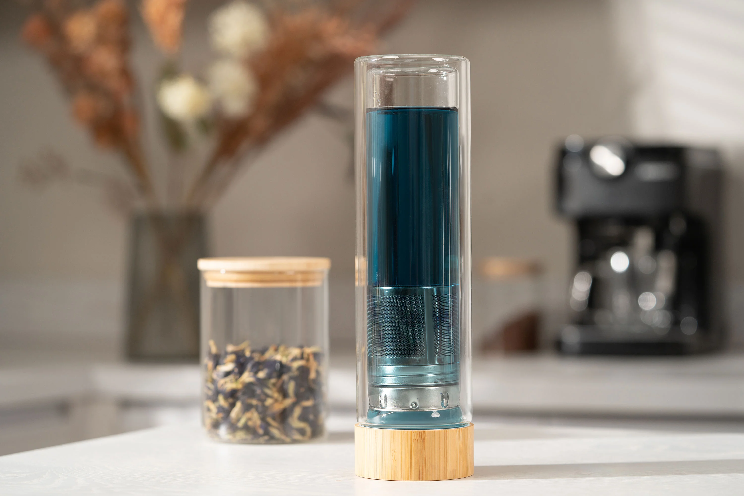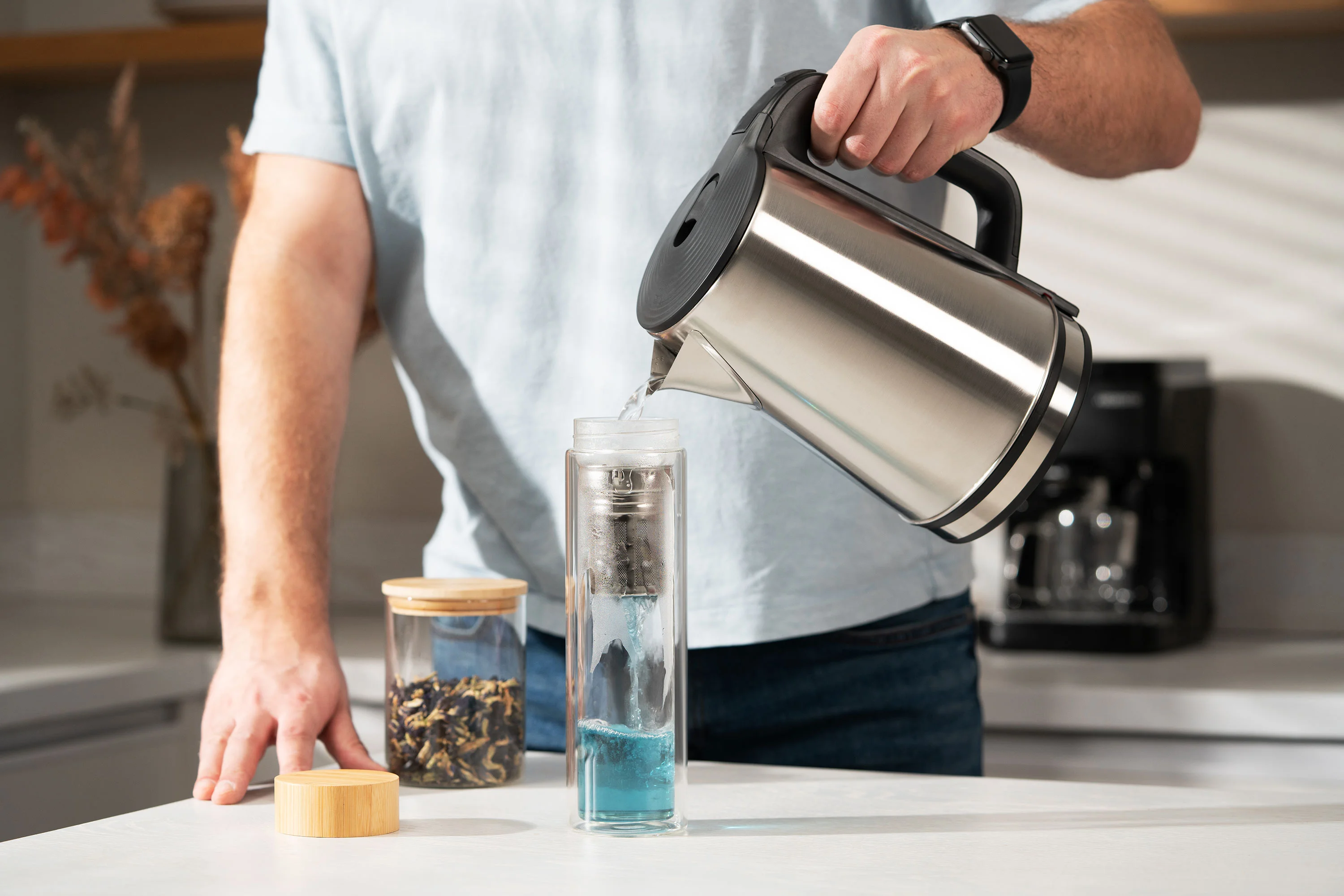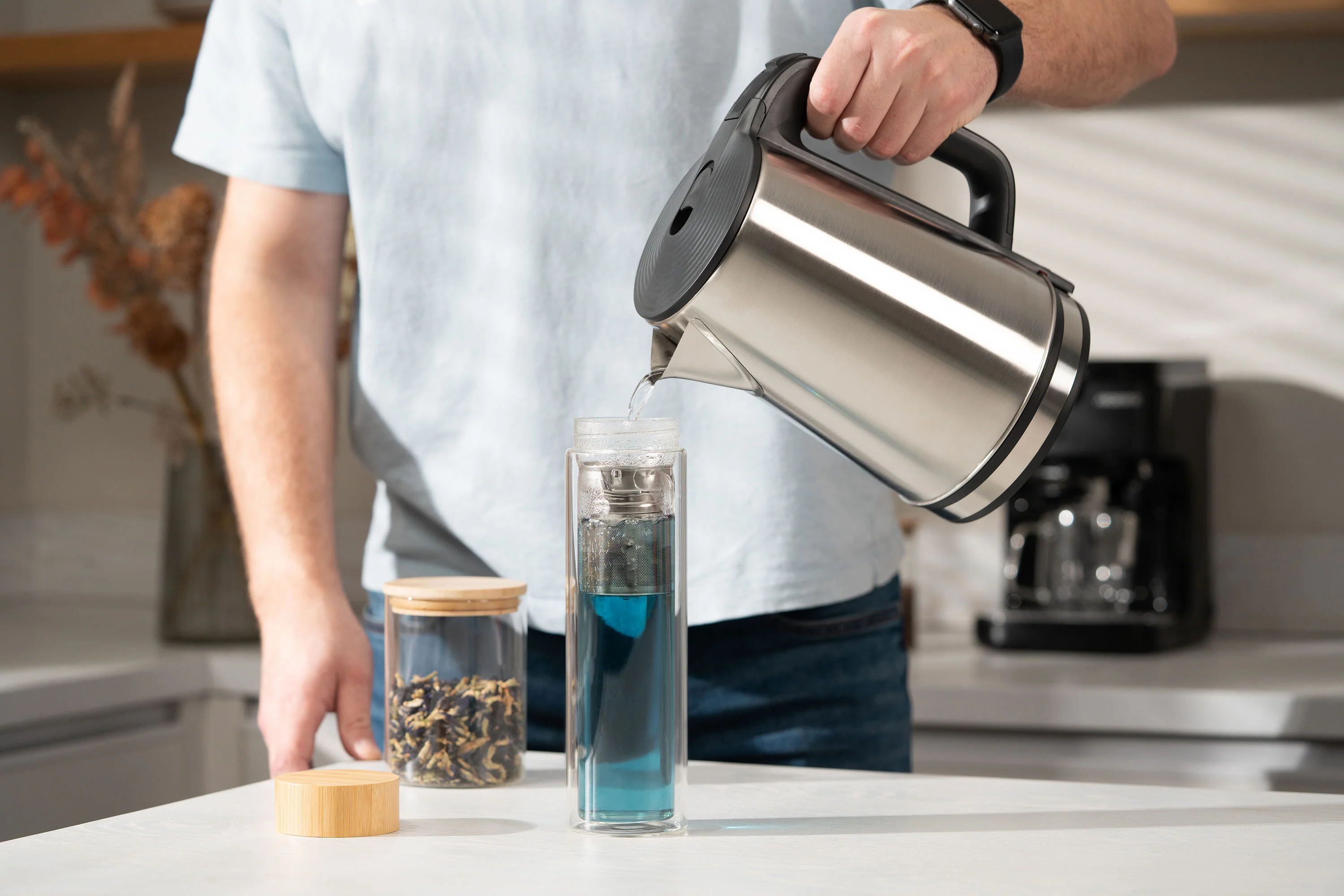 - Материал корпуса нержавіюча сталь; боросилікатне скло; бамбук;