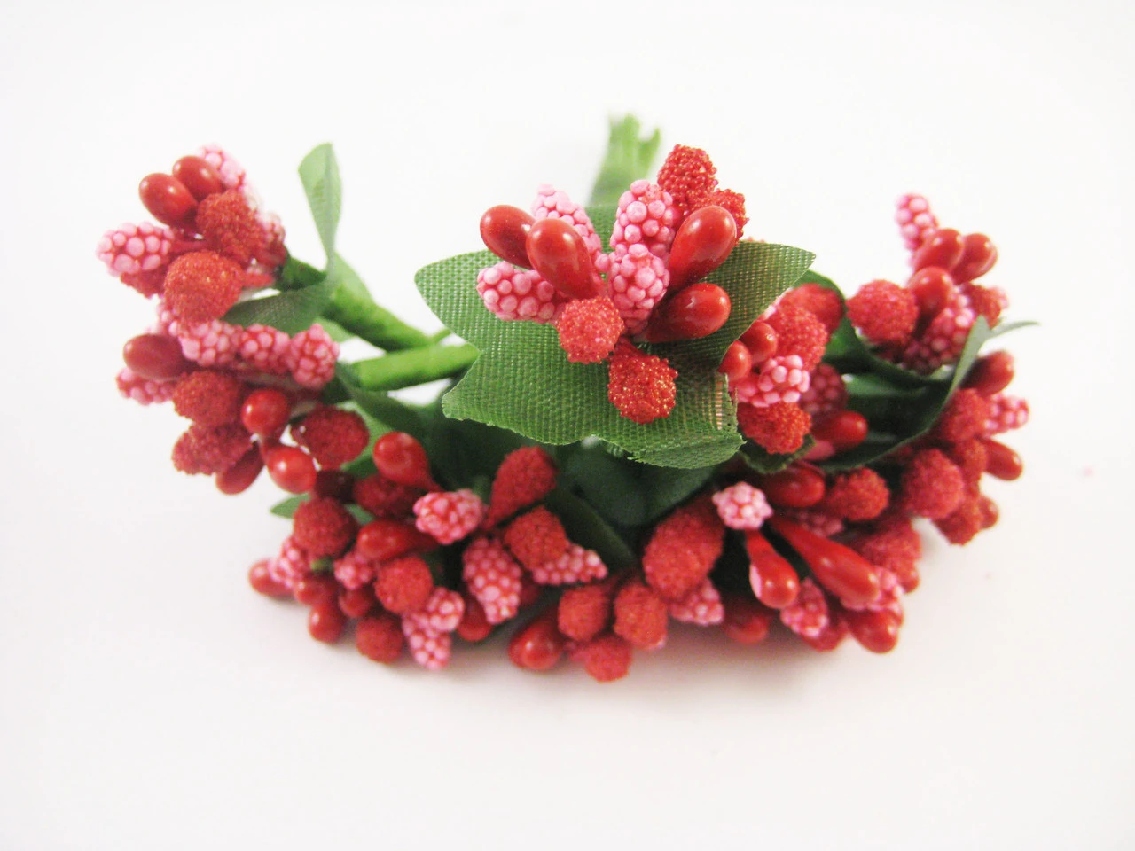 Цветы искусственные на ветке, 12шт/пучок, тычинки, Цвет «красный»