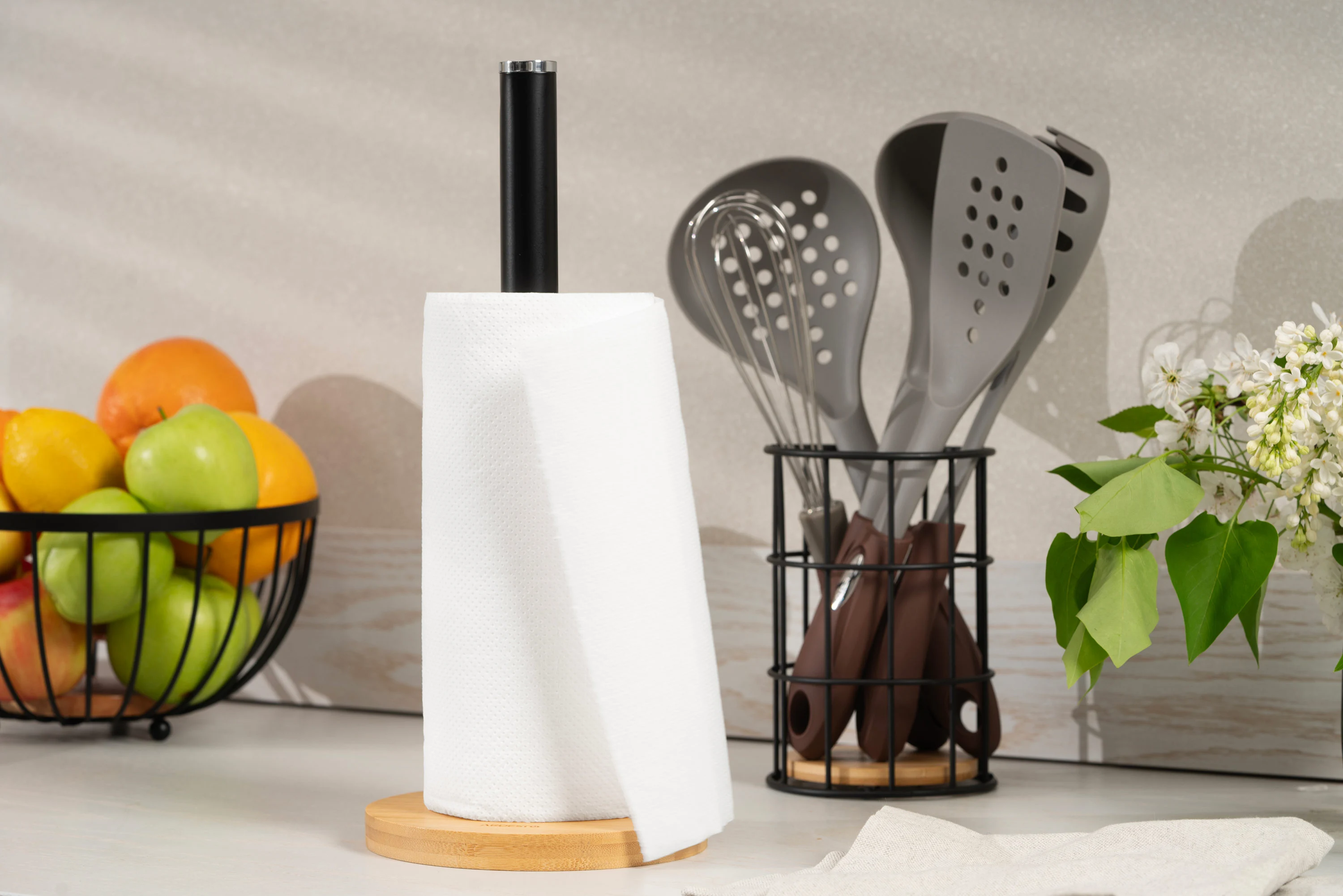 Функціональний і стильний тримач для паперових рушників ARDESTO Midori є аксесуаром, який зробить повсякдення на кухні зручним і організованим. Конструкція з металу чорного кольору та бамбуковою основою не займе багато місця на столі. Завдяки розміру 15 × 34 см призначений для стандартних паперових рушників. Мити виріб в посудомийній машині не можна.