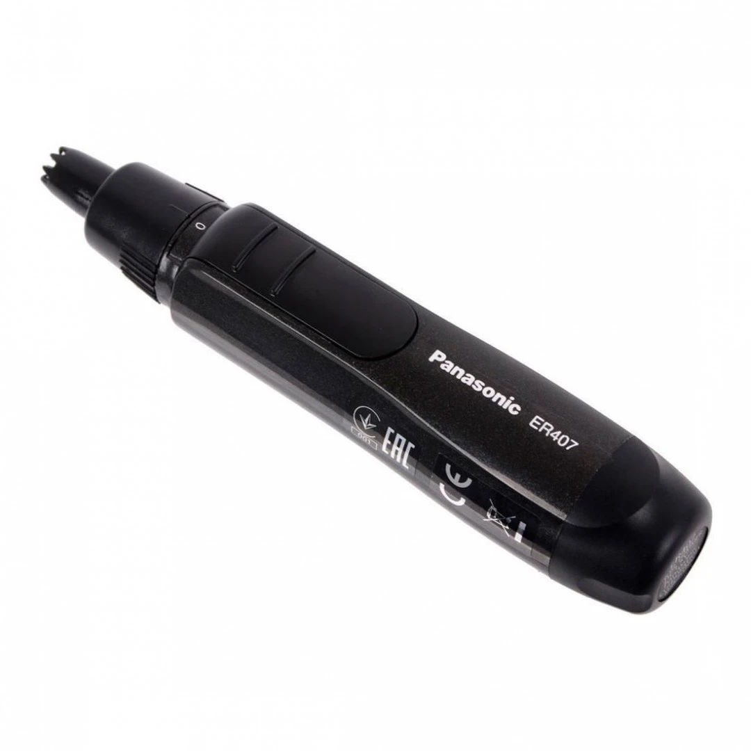 Машинка для стрижки волосся в носі та вухах із системою безпеки. Працює PANASONIC ER-407-K520 від батарейки типу АА. Повного заряду досить для 90 хвилин безперервної роботи пристрою. Передбачена можливість вологого чищення.