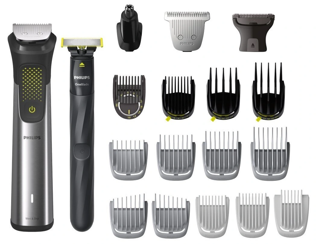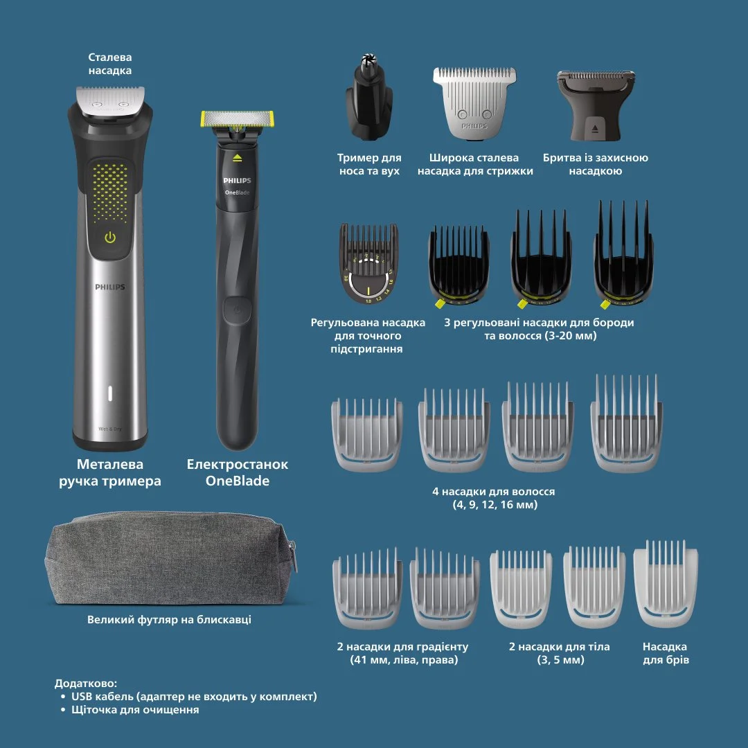 Тример Philips Series 9000, акум., насадок-20, OneBlade, сталь, сірий