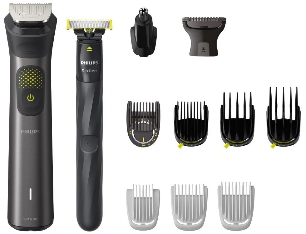 Тример Philips Series 9000, для бороди, вусів, голови та тіла, акумулятор, сталь, сірий
