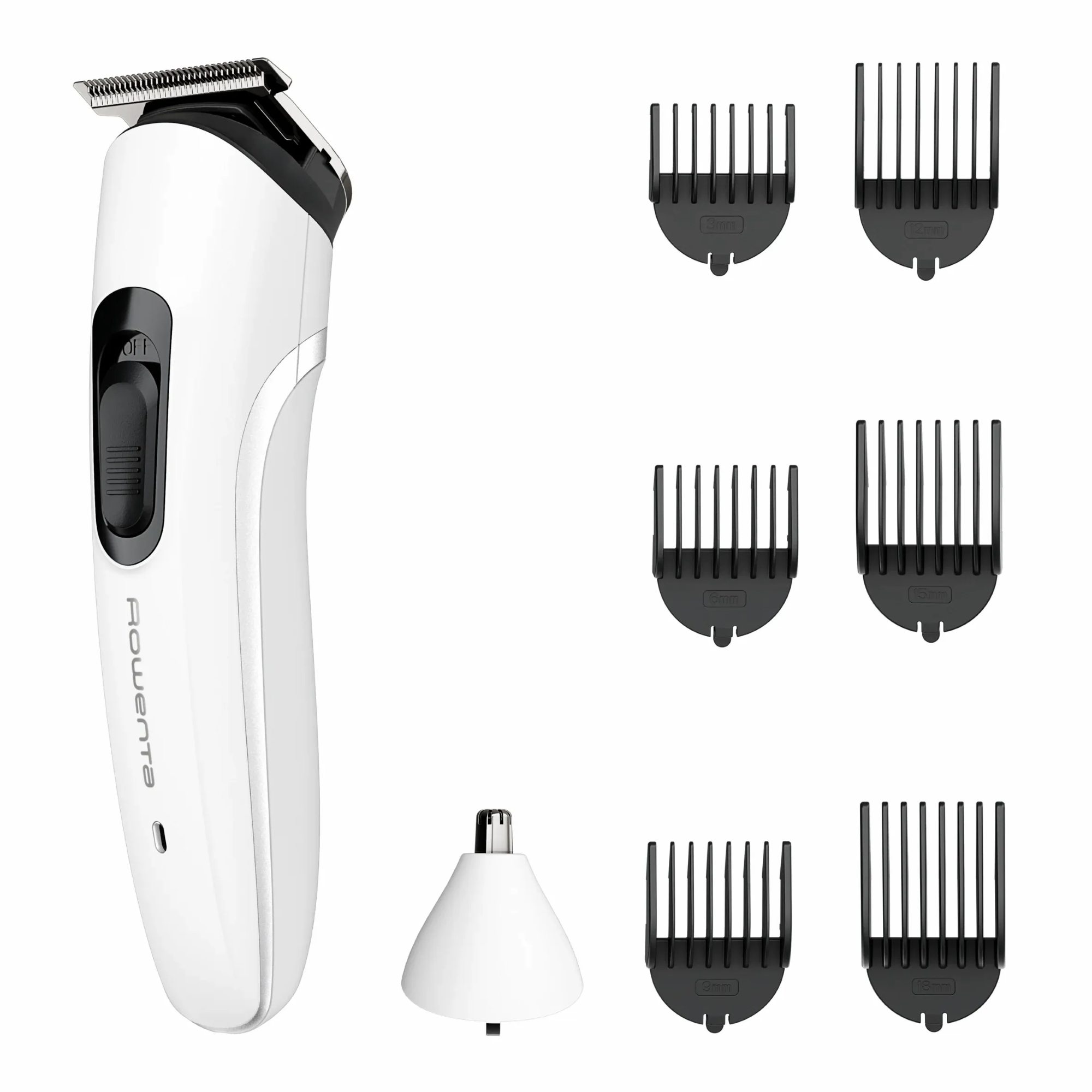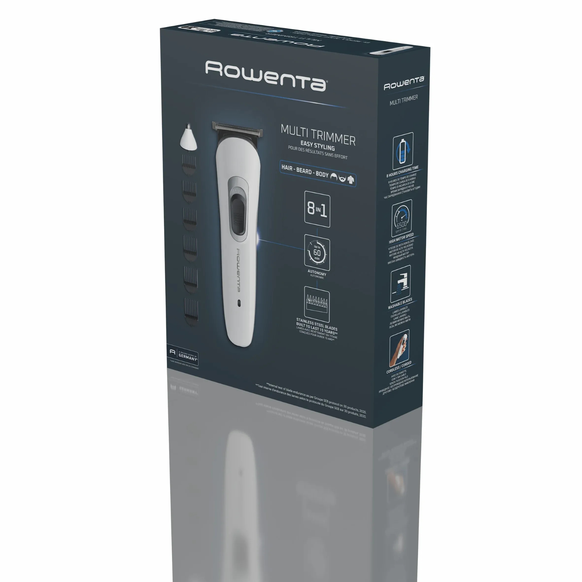 Тример Rowenta Trim&Style, для бороди, носа, вусів і голови, мережа+акумулятор, сталь, білий