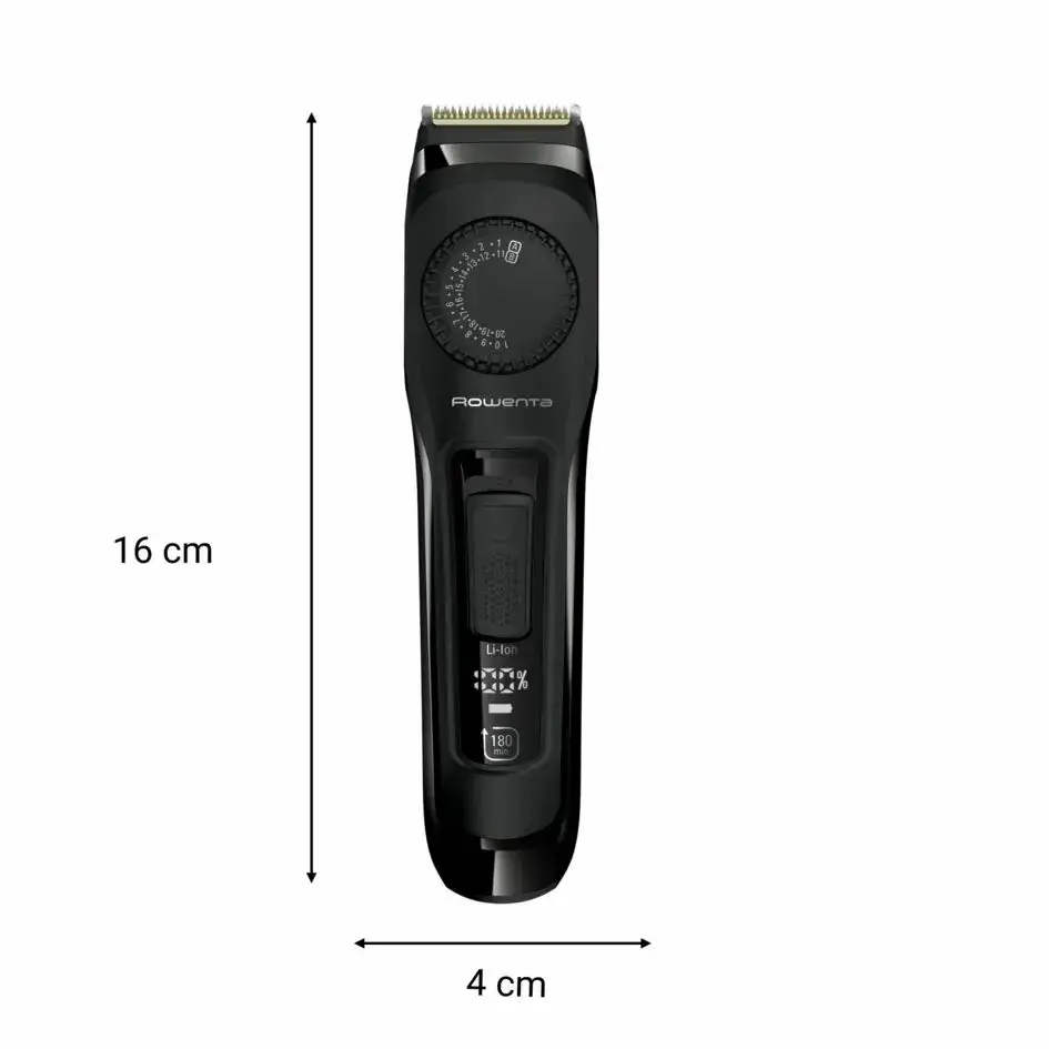Тример для бороди Rowenta Virtuo забезпечує тривалу роботу та ідеальну стрижку за один раз, навіть для густого волосся на обличчі. Ідеально пристосований до бороди будь-якої довжини, ви з легкістю зможете створити свій стиль завдяки точному циферблату тримера, який пропонує 39 варіантів довжини стрижки. Леза з нержавіючої сталі з титановим покриттям гарантують оптимальну гостроту день за днем, а 180 хвилин автономної роботи та цифровий моніторинг заряду гарантують безперебійну та комфортну експлуатацію.