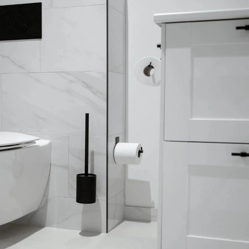 Наполнение для ванной комнаты от Beslag Design включает в себя разнообразные аксессуары, такие как полки, держатели для полотенец и туалетной бумаги, туалетные щетки и многое другое. Все они созданы для удобства использования и оптимального размещения в ванной комнате.