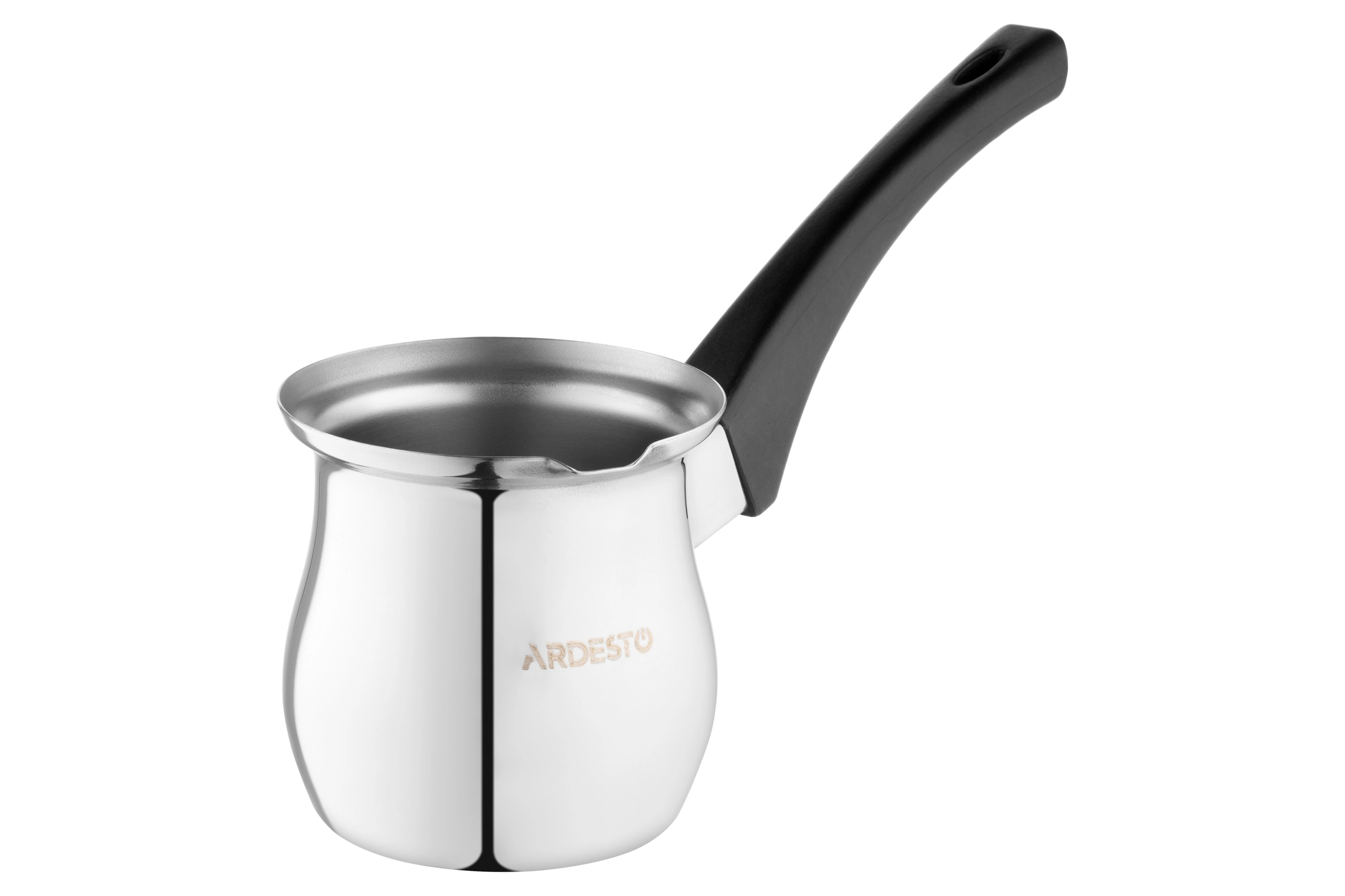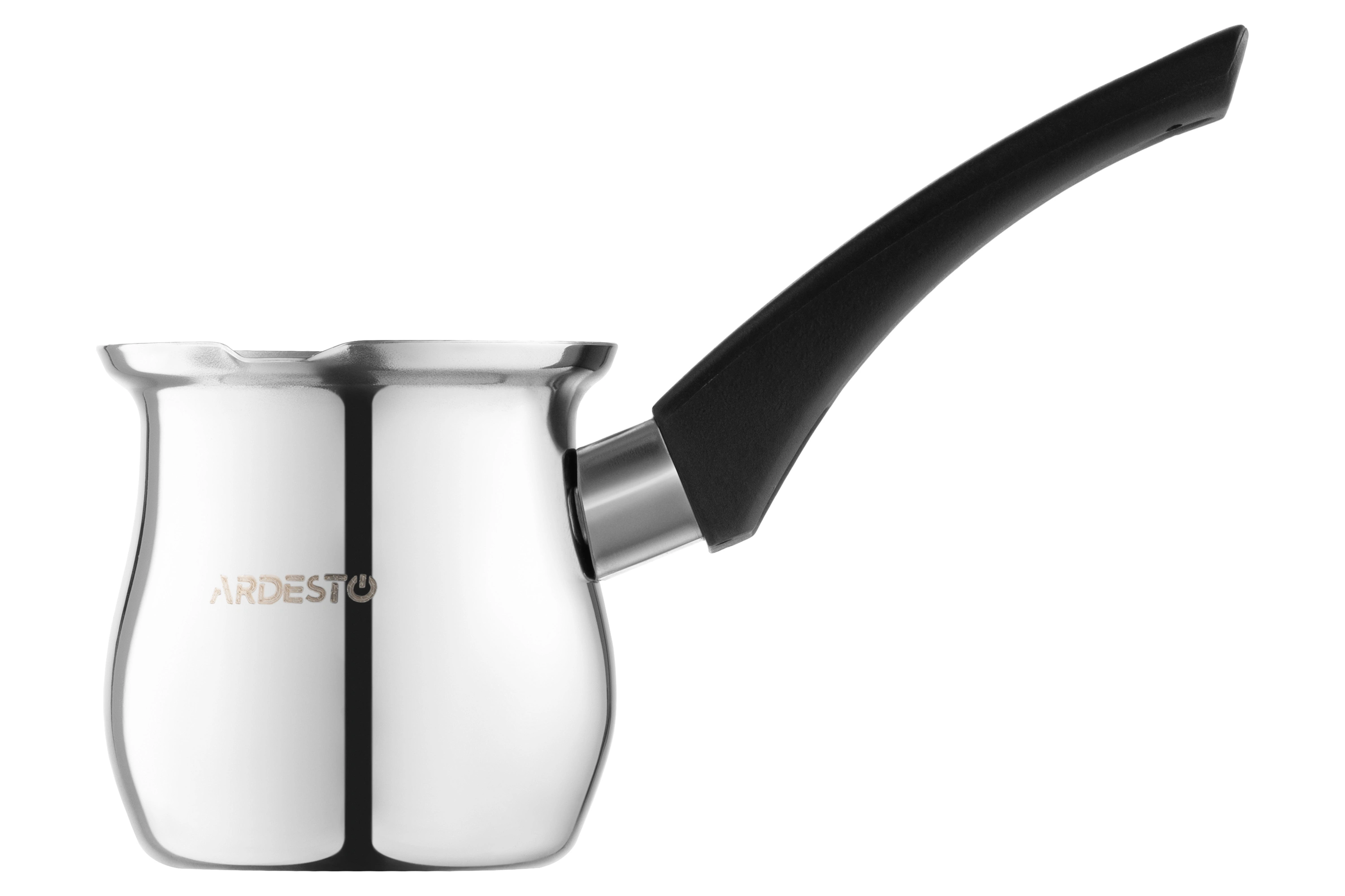 Варіння кави в турці – це справжній обряд для любителів цього напою. Із туркою ARDESTO BLACK MARS об’ємом 0,35 л можна щодня насолоджуватися ароматною кавою. Турка виготовлена з нержавіючої сталі 18/10, товщина стінок становить 0,7 мм. Матеріал добре служить і вирізняється довговічністю. Турка має міцну, надійно закріплену бакелітову ручку. Посуд сумісний із газовими, електричними та склокерамічними плитами. Виробник не рекомендує мити в посудомийній машині.