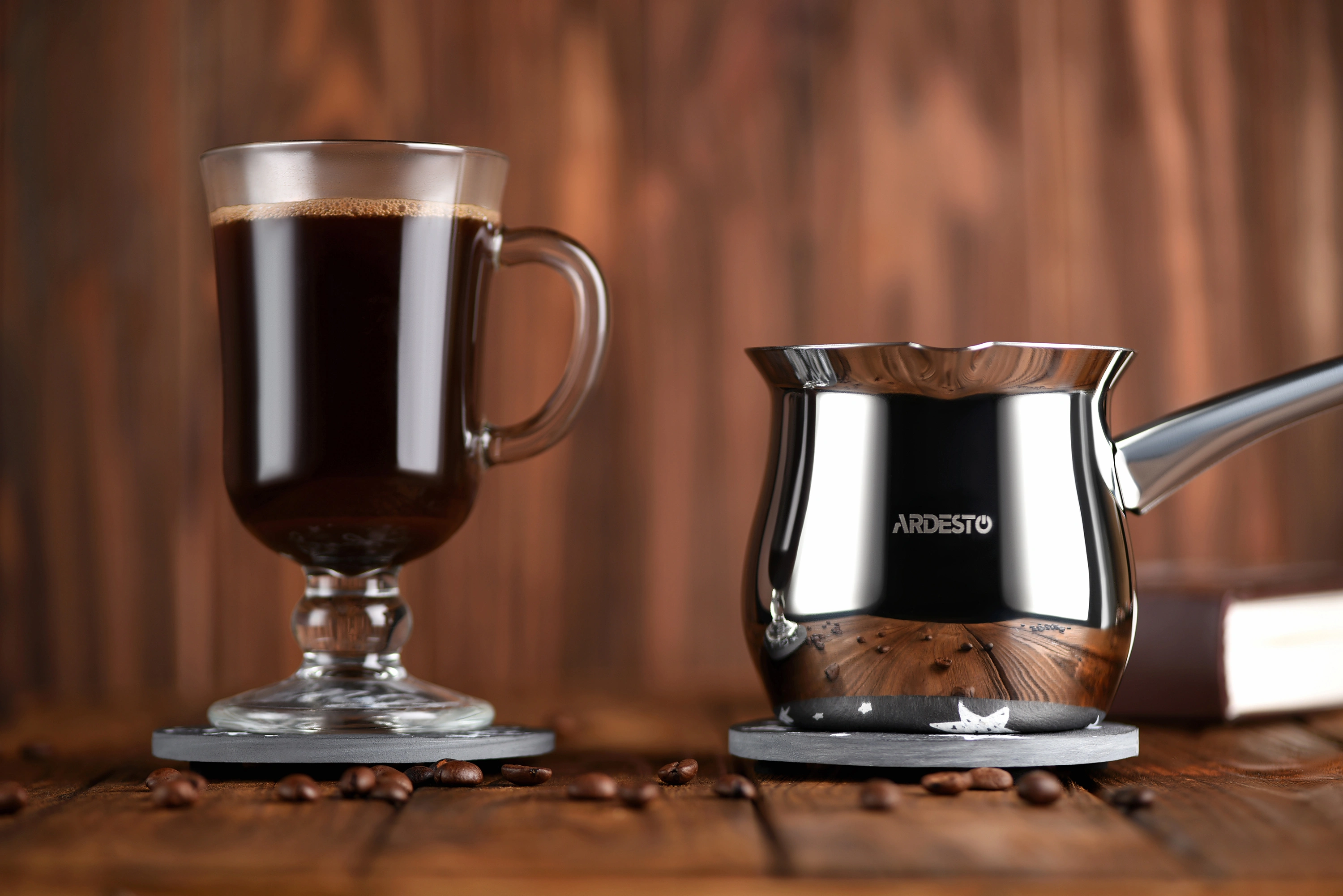 Турка серії BLACK MARS виготовлена з нержавіючої сталі 18/10. Турка сумісна з усіма видами плит, окрім індукційних. Для очищення можна використовувати посудомийну машину.