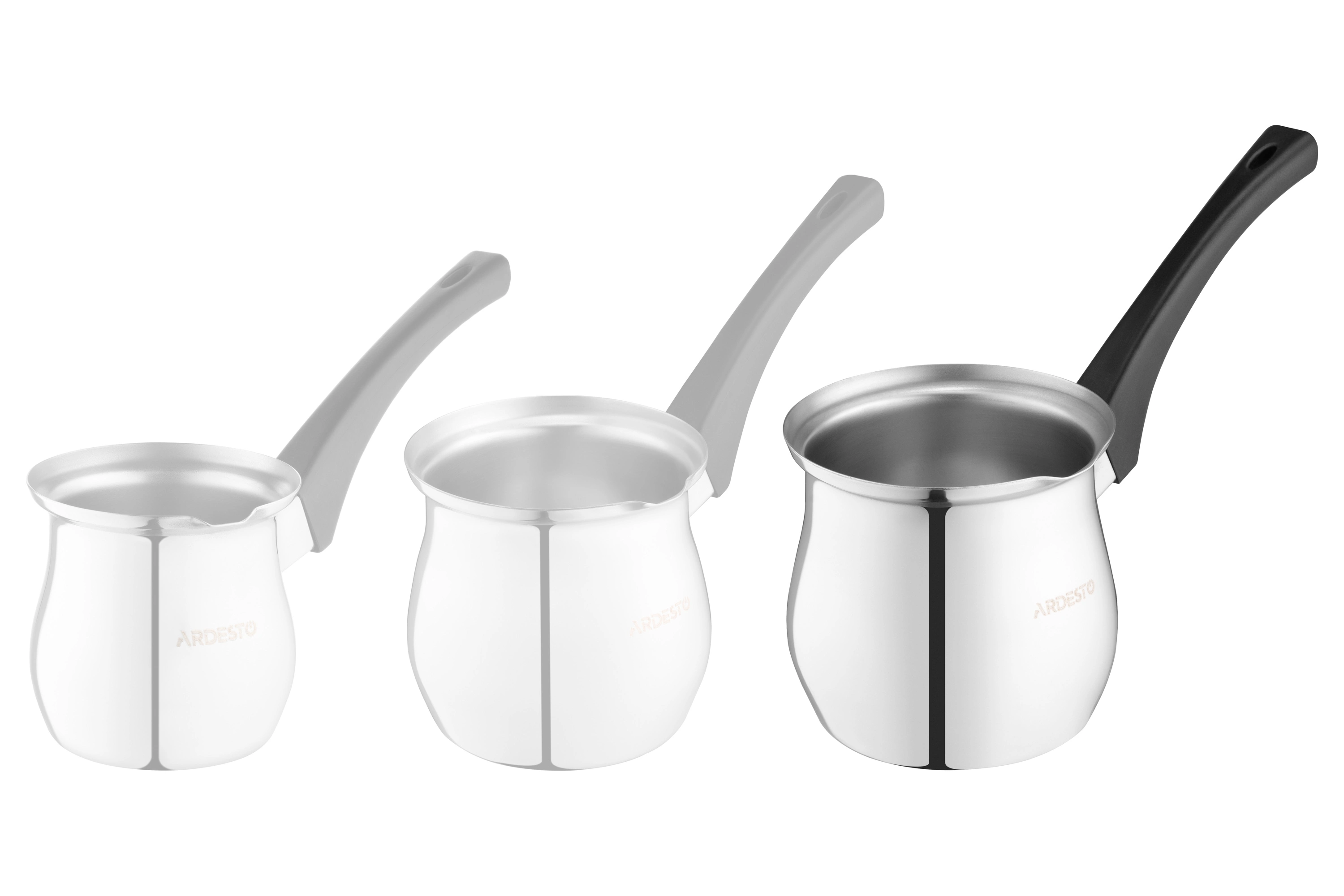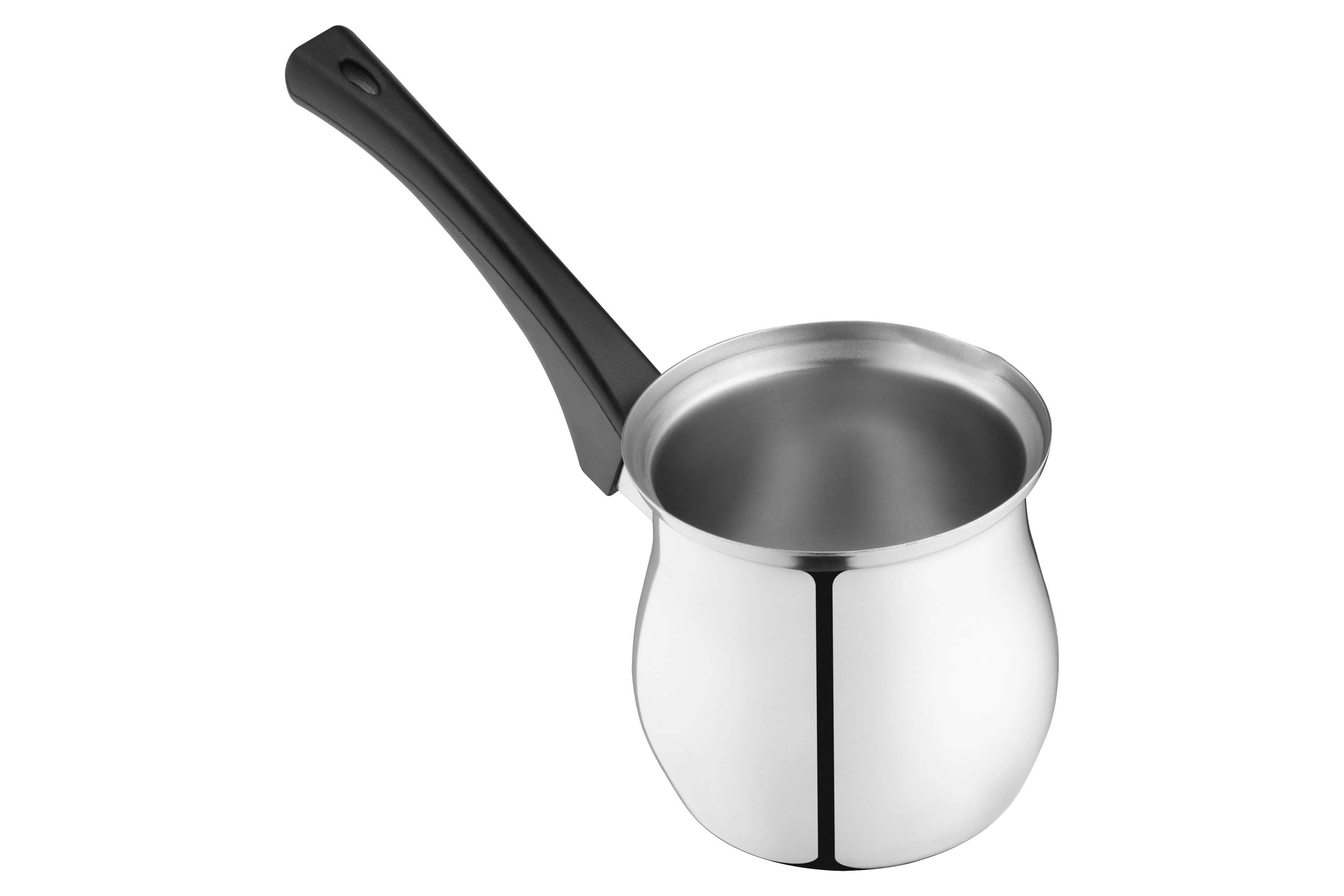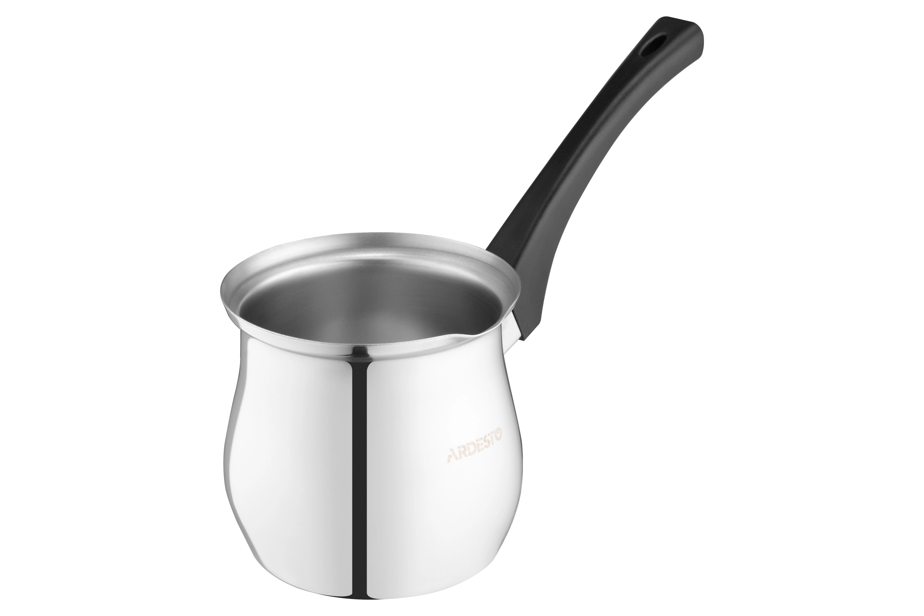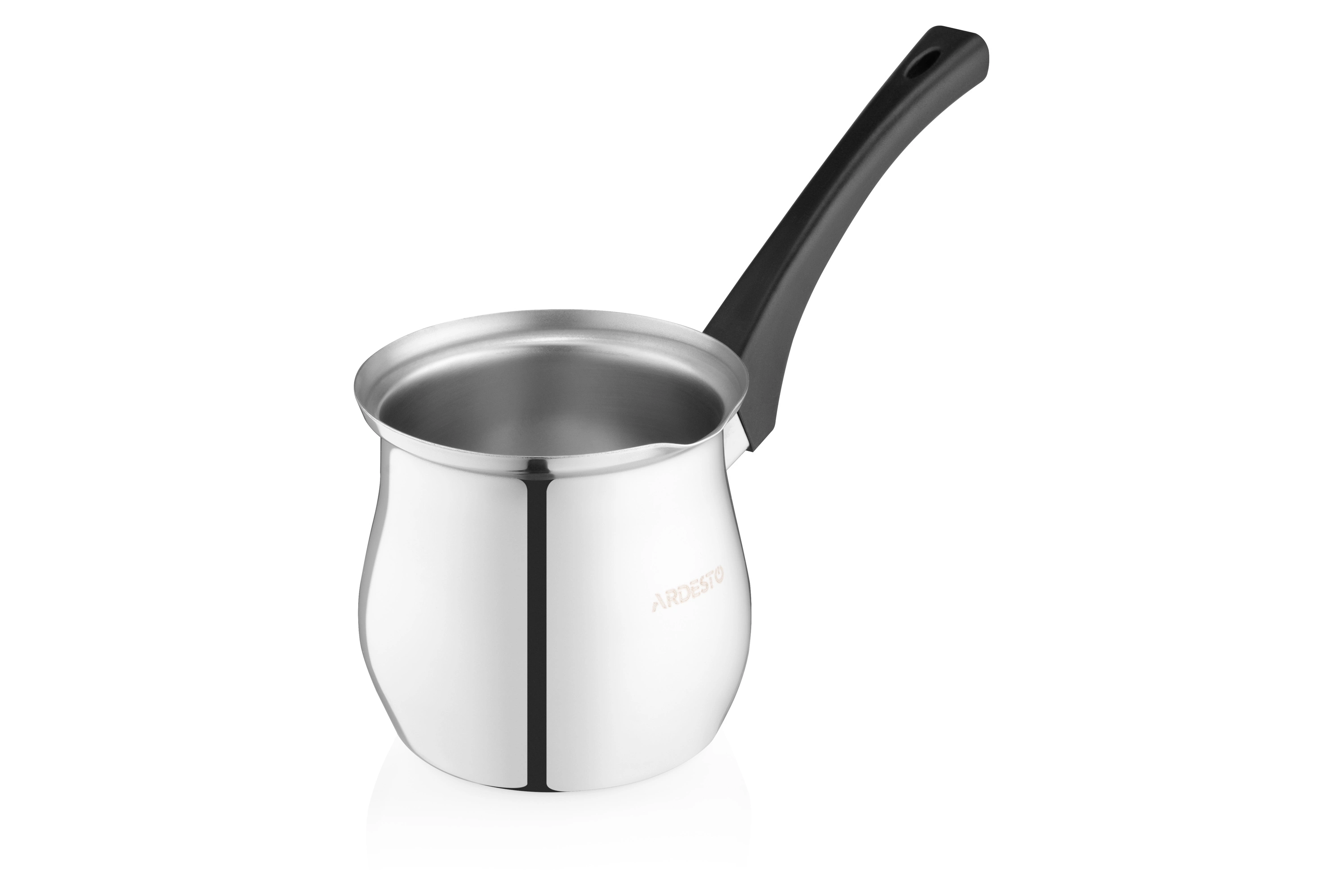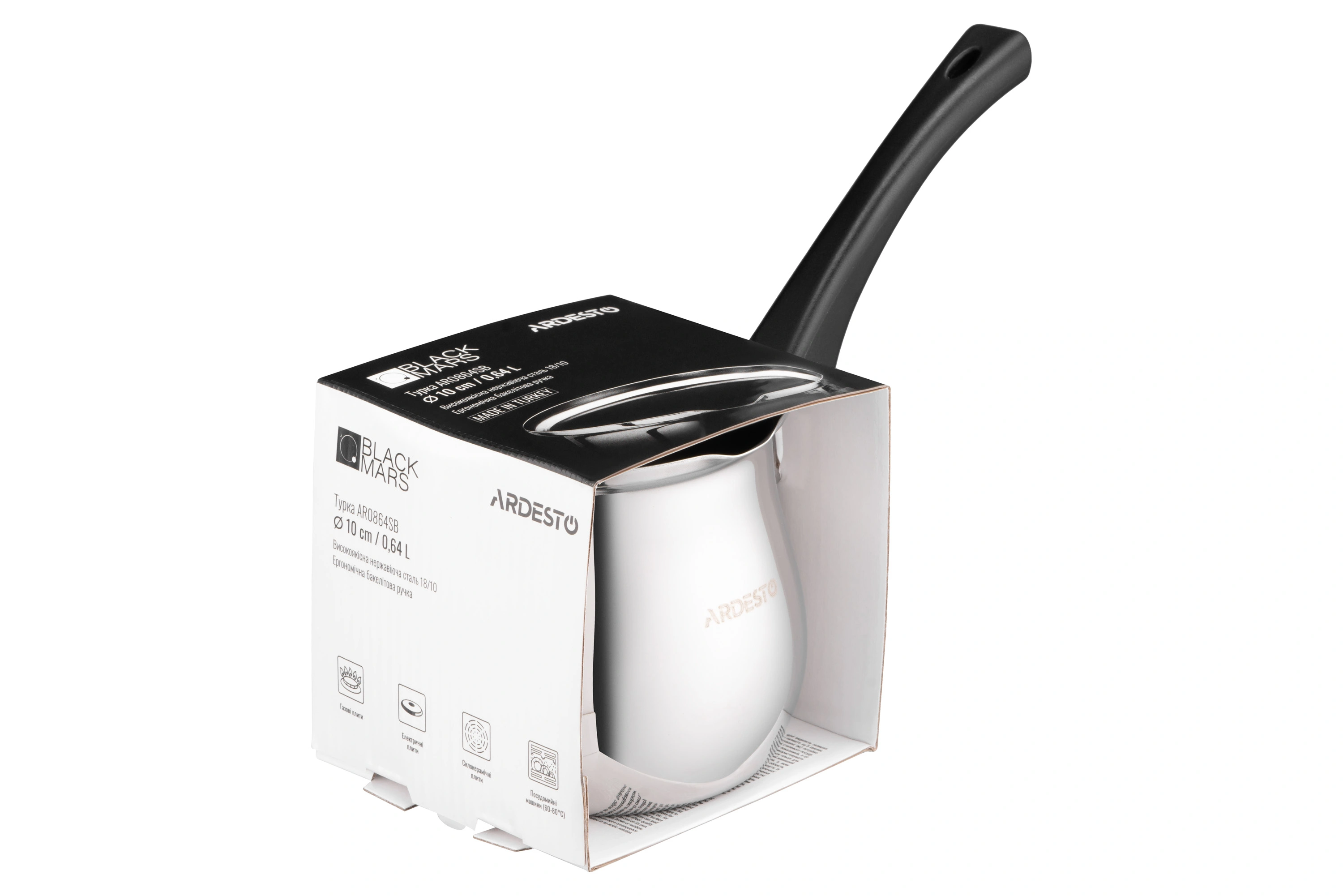 Варіння кави в турці – це справжній обряд для любителів цього напою. Із туркою ARDESTO BLACK MARS об’ємом 0,64 л можна щодня насолоджуватися ароматною кавою. Виготовлена з нержавіючої сталі 18/10, товщина стінок становить 0,7 мм. Матеріал добре служить і вирізняється довговічністю. Турка має міцну, надійно закріплену бакелітову ручку. Посуд сумісний із газовими, електричними та склокерамічними плитами. Виробник не рекомендує мити в посудомийній машині.