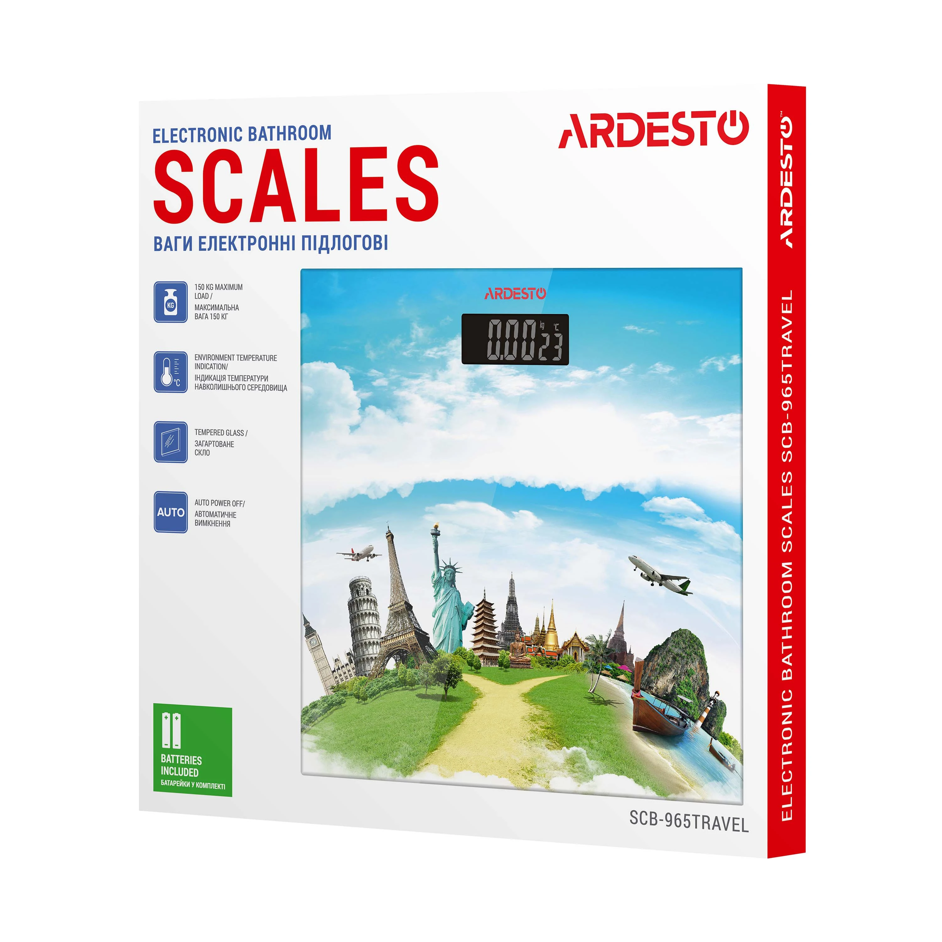 Ваги Ardesto підлогові Travel, 150кг, AAAx2 в комплекті, скло, багатокольорові