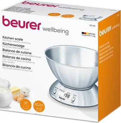 Ваги Beurer кухонні з чашею, 5кг, 2хААА , нержавіюча сталь, сірий