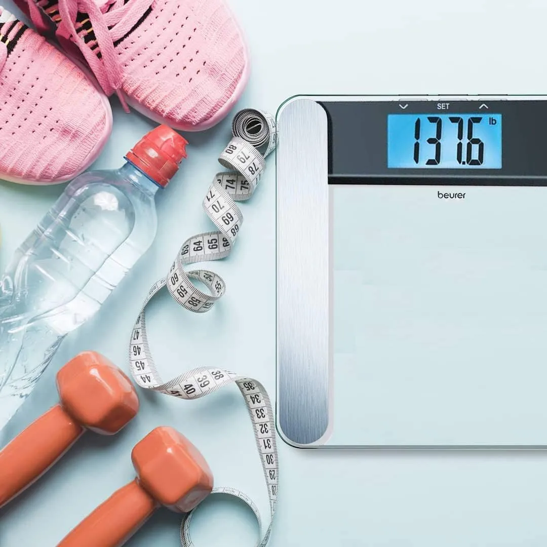 Ваги Beurer підлогові, 180кг, товщина 8мм, великий дисплей, СR2032x2 в комплекті, скло, прозорий