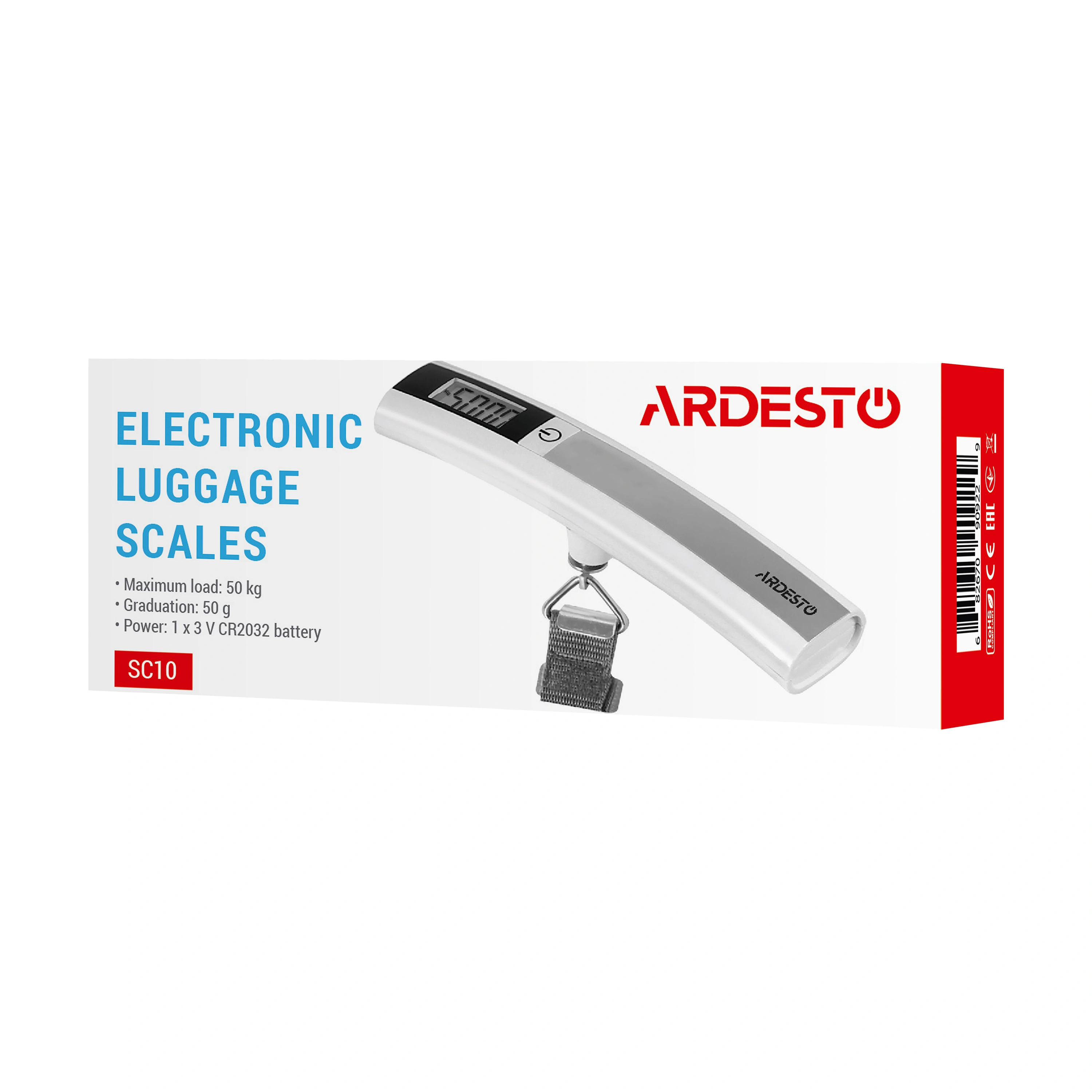 Ваги електронні дорожні Ardesto, 50кг, R2032x1 в комплекті, пластик/метал, білий
