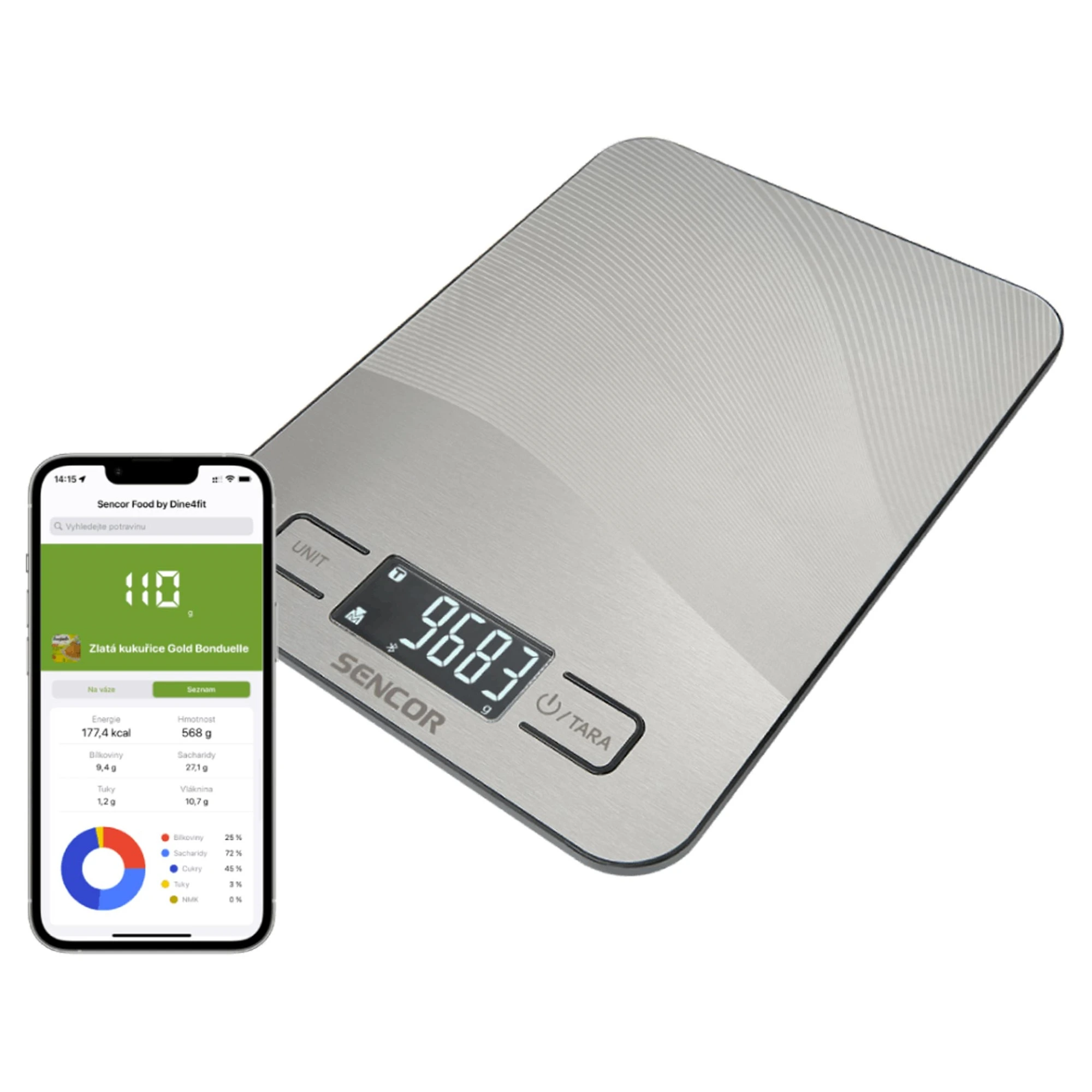 Ваги Sencor кухонні, 10кг, підключення до смартфону, AAAx2, сірий