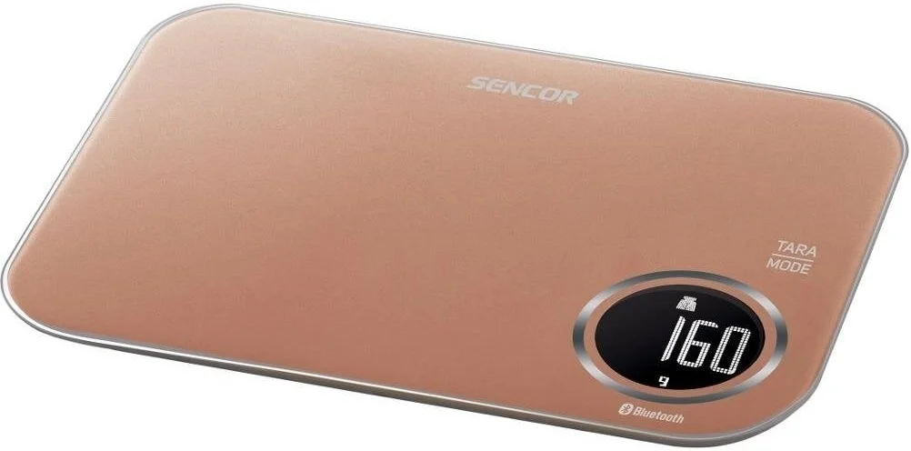 Ваги Sencor кухонні, 5кг, підключення до смартфону, AAAx2 , пластик, золотий