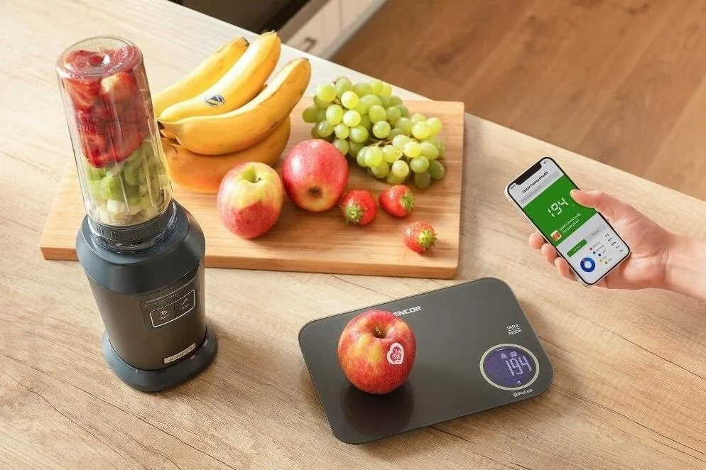 Ваги Sencor кухонні. Оригінальний додаток Sencor FOOD, створений у співпраці з авторами Dine4Fit з багатою базою даних продуктів харчування. Дає докладну інформацію про вживану їжу (вуглеводи, білки, жири, холестерин, клітковина…). РК-дисплей з білим підсвічуванням. 3 режими: режим зважування/режим вимірювання об'єму молока/режим вимірювання об'єму води.