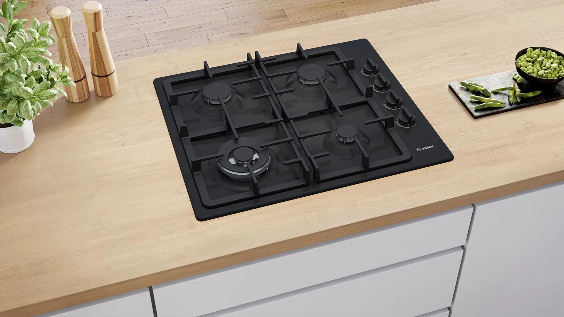 Варильна поверхня Bosch газова, 60см, чавун, WOK,чорний