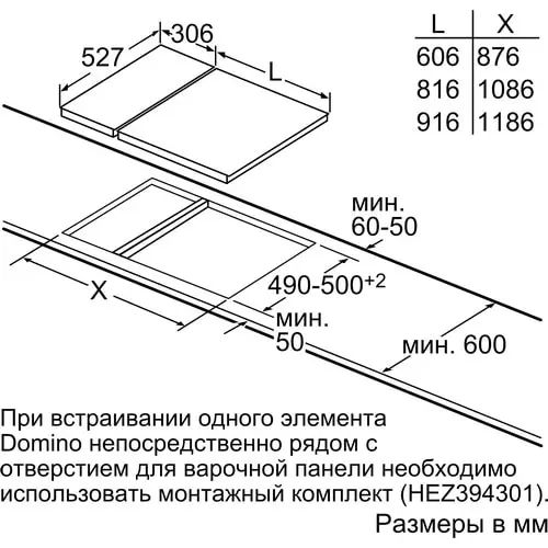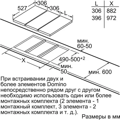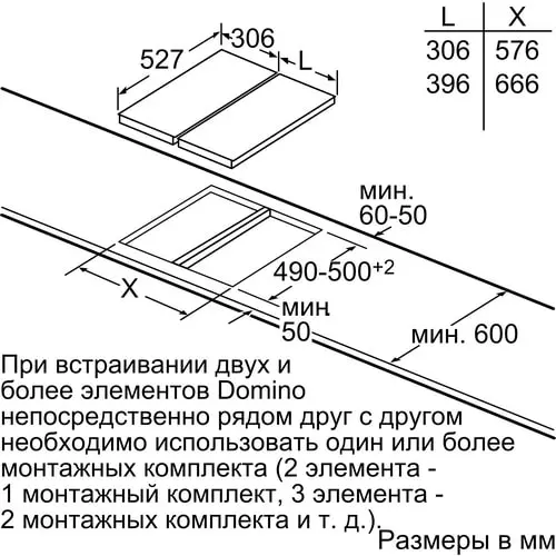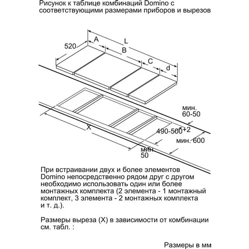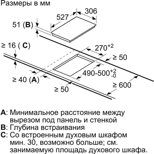 * Розміри ніші для вбуд. (мм) : 51 x 270 x 490-500
